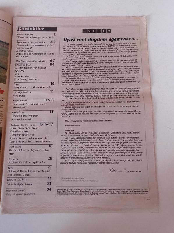 Cumhuriyet Bilim Teknik Gazetesi - 17 Mart 2001 -Sayı 730 -Kandırma Yolları Üzerine - Bilimde Dünya Sıralamasında Gerçek Yerimiz Neresi - Baskıları Tükenmeyen Kitaplar - Öğrenciler De Buluş Yapar - Magnezyum Her Derde Deva Mı - Şizofreni İle İlgili Son Gelişmeler - İzmir Büyük Kanal Projesi adlı eser Türkçe dilindedir.