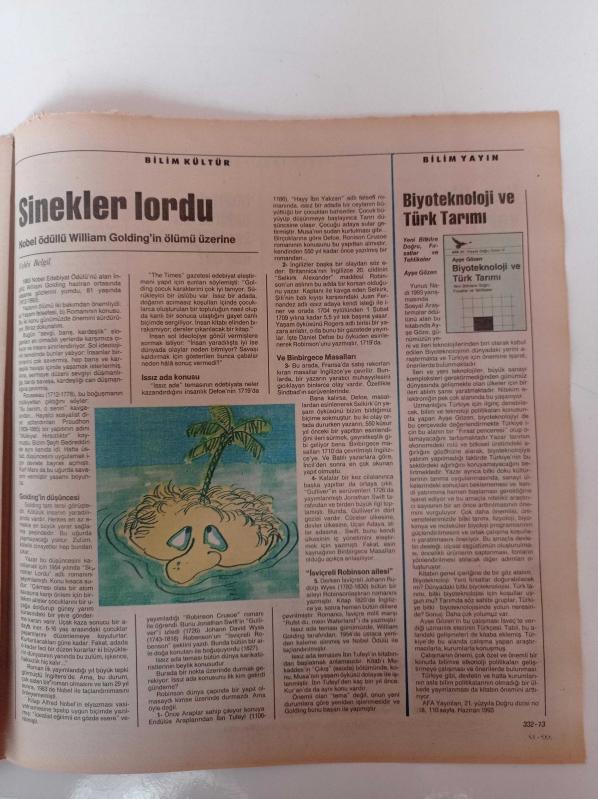 Cumhuriyet Bilim Teknik Gazetesi - 31 Temmuz 1993 - Sayı 332 - Hayvan Deneyleri Ne Ölçüde İnsanca -Altaylara Türk Yorumu - Celâl Şengör - Orman Yangınlarına Yeni Çözüm - Sinekler Lordu - Yeni Teknolojik Ürünler - Zamanı Kullanmayı Bilmek adlı eser Türkçe dilindedir.