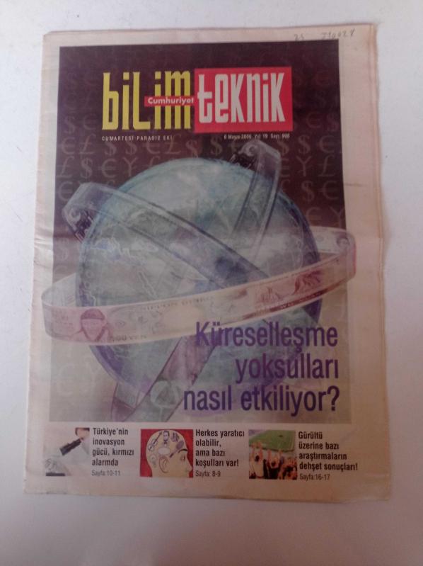 Cumhuriyet Bilim Teknik Gazetesi - 6 Mayıs 2006 - Sayı 998 - Küreselleşme Yoksulları Nasıl Etkiliyor - Türkiye'nin İnovasyon Gücü Kırmızı Alarmda - Herkes Yaratıcı Olabilir Ama Bazı Koşulları Var - Gürültü Üzerine Bazı Araştırmaların Dehşet Sonuçları adlı eser Türkçe dilindedir.