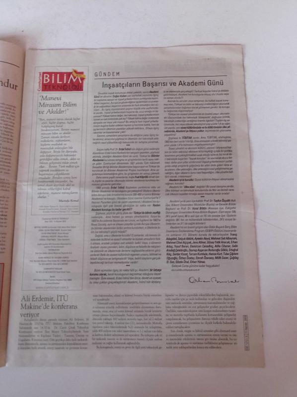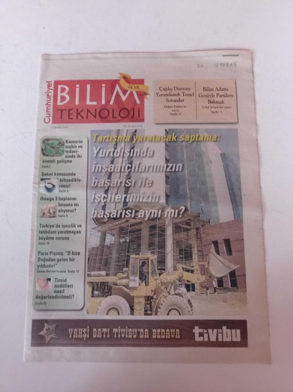 Sayfa Boyutu: 28*38cm Sayfa Sayısı:20 Cumhuriyet Bilim Teknoloji Gazetesi Yıpranma, sararmalar, kupon kesiği ve yırtılmalar zamana bağlı olarak görülebilir