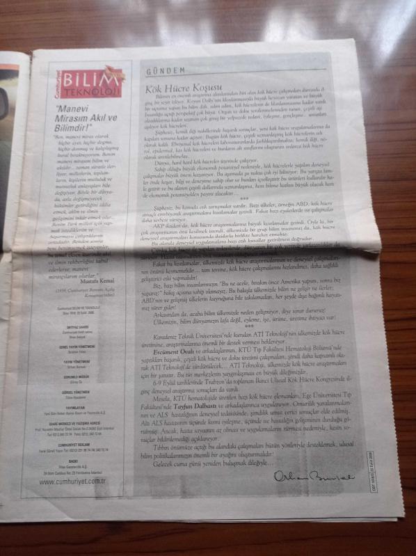 Sayfa Boyutu: 28*38cm Sayfa Sayısı: 24 Cumhuriyet Bilim Teknoloji Gazetesi Yıpranma, sararmalar, kupon kesiği ve yırtılmalar zamana bağlı olarak görülebilir