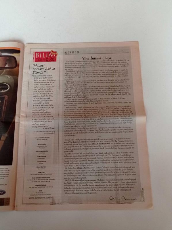 Sayfa Boyutu: 28*38cm Sayfa Sayısı:24 Cumhuriyet Bilim Teknoloji Gazetesi Yıpranma, sararmalar, kupon kesiği ve yırtılmalar zamana bağlı olarak görülebilir