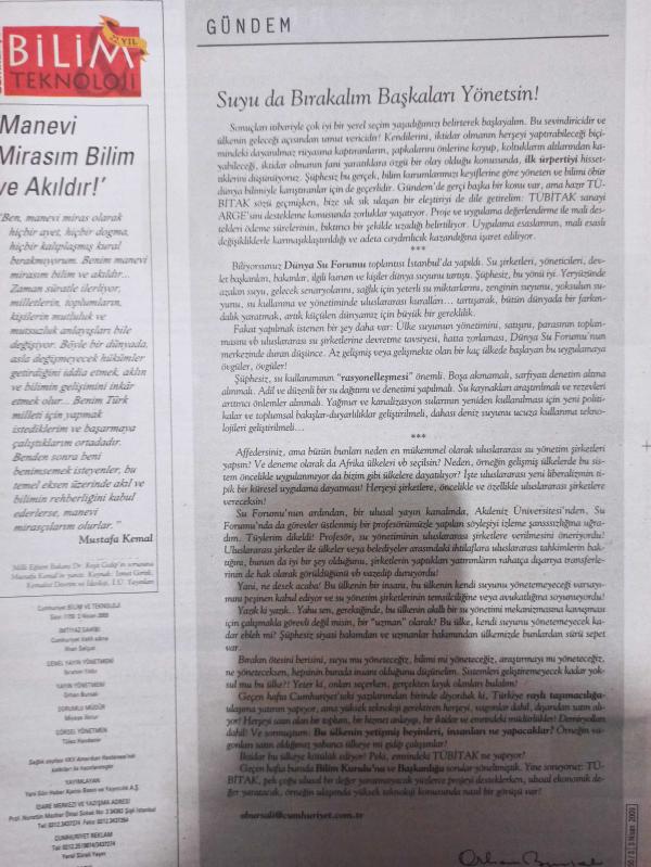 Cumhuriyet Bilim Teknoloji Gazetesi- 3 Nisan 2009- George Soros- Celal Şengör- Aykut Göker- Tahir Ceylan- Tanol Türkoğlu- Gülçin Arı Sarılgan- Bahatti Baysal Yıpranma, Sararma, Yırtılmalar Zamana Bağlı Olarak Görülebilir.