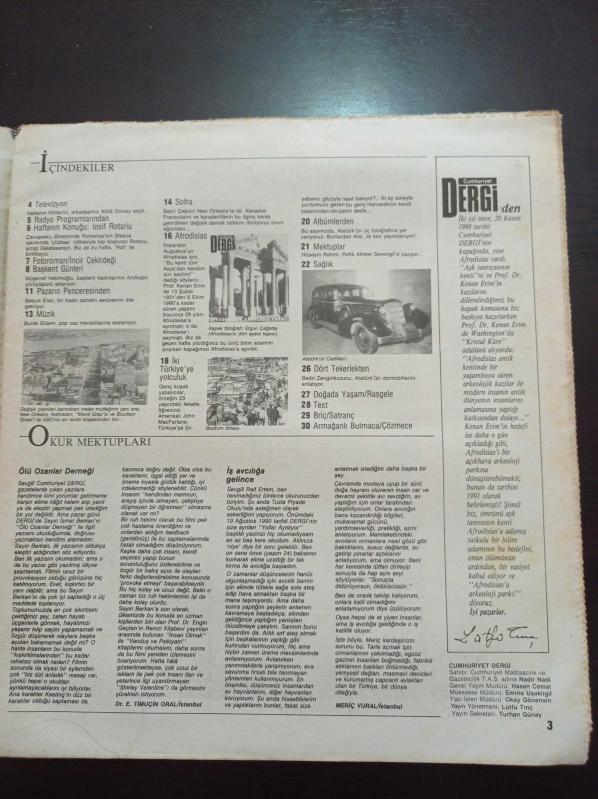 Cumhuriyet Dergi Gazetesi - 11 Kasım 1990 - Sayı 244 - Hüseyin Rahmi Gürpınar -Afrodisias'a Arkeoloji Parkı - Ölü Ozanlar Derneği - Hüseyin Rahmi Gürpınar - Mustafa Kemal Atatürk - Bourbon Street adlı eser, Kitap > Süreli Yayınlar > Gazeteler kategorisinde İkinci El olarak satıştadır.
