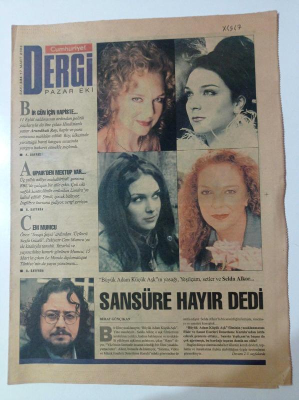 Cumhuriyet Dergi Gazetesi - 17 Mart 2002 - Sayı 834 - Selda Alkor Fotoğrafı- Cem Mumcu - Terapi Şeysi - Arundhati Roy - Aupair'den Mektup Var - BBC- Büyük Adam Küçük Aşk adlı eser Türkçe dilindedir.