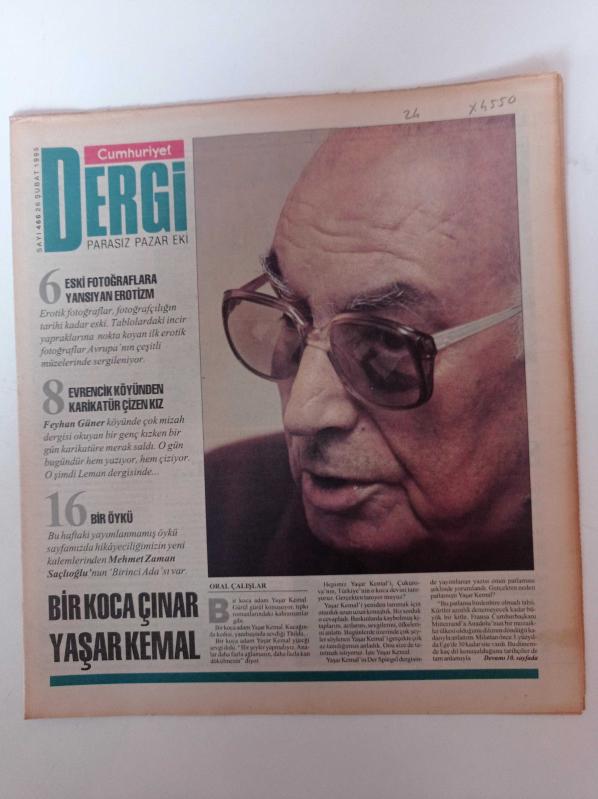 Cumhuriyet Dergi Gazetesi - 26 Şubat 1995 - Sayı 466 - Bir Koca Çınar Yaşar Kemal Fotoğrafı - Eski Fotoğraflara Yansıyan Erotizm - Evrencik Köyünden Karikatür Çizen Kız - Bir Öykü - Mehmet Zaman Saçlıoğlu adlı eser Türkçe dilindedir.