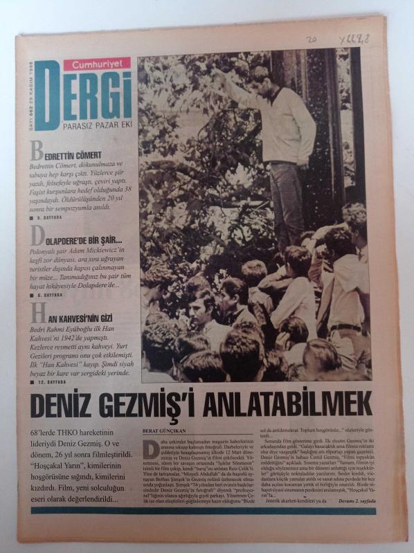 Cumhuriyet Dergi Gazetesi - 29 Kasım 1998 - Sayı 662 - Deniz Gezmiş'i Anlatabilmek - 68 Kuşağı - Reis Çelik - Hoşçakal Yarın - Mazlum Çimen - Berhan Şimşek - Dolapdere'de Bir Şair Adam Mickiewicz- Bedrettin Cömert - Bedri Rahmi Eyüboğlu - Han Kahvesi adlı eser Türkçe dilindedir.
