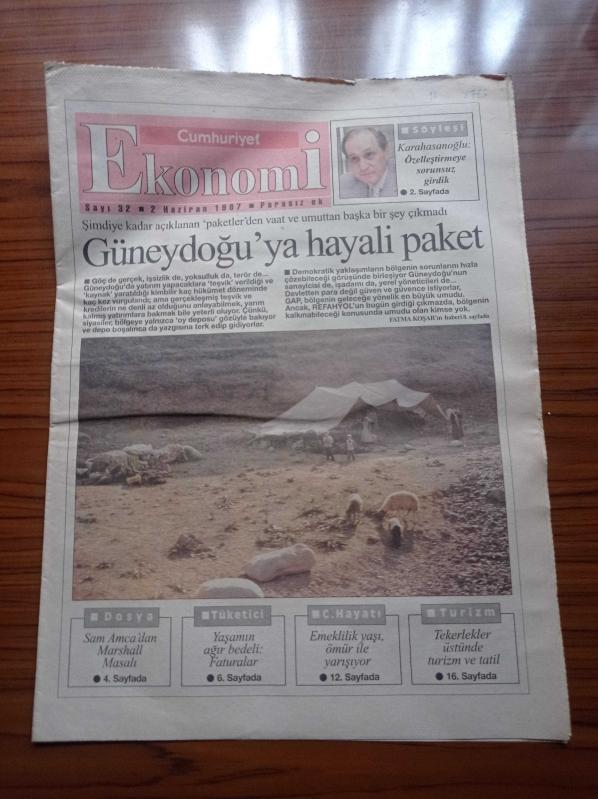 Cumhuriyet Ekonomi Gazetesi - 2 Haziran 1997 - Sayı 32 - Sümerbank'ın Genel Müdürü Şükrü Karahasanoğlu Özelleştirmeye Sorunsuz Girdik - Güneydoğu'ya Hayalî Paket - Sam Amca'dan Marshall Masalı - Yaşamın Ağır Bedeli Faturalar - Emeklilik Yaşı Ömür İle Yarışıyor - Tekerlekler Üstünde Turizm ve Tatil adlı eser Türkçe dilindedir.