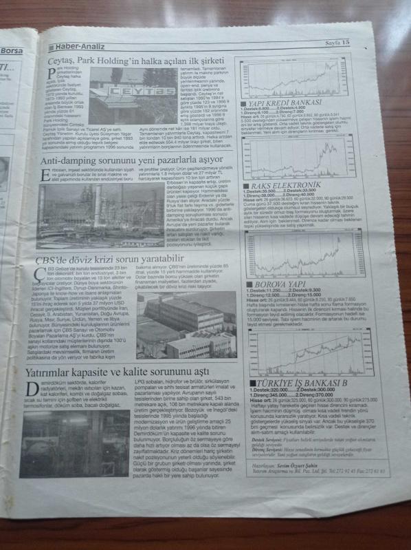 Sayfa Boyutu: 28*38cm Sayfa Sayısı: 16 Cumhuriyet Ekonomi Gazetesi Yıpranma, sararmalar, kupon kesiği ve yırtılmalar zamana bağlı olarak görülebilir