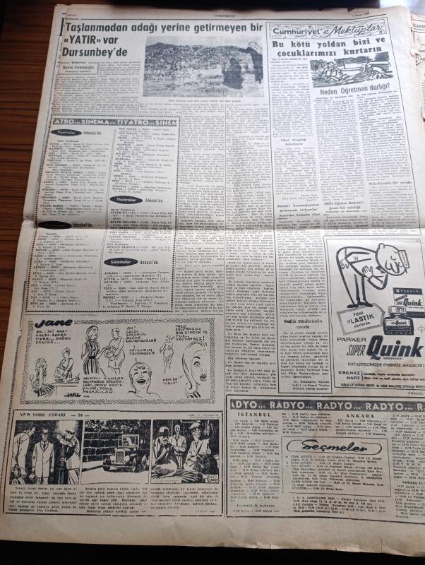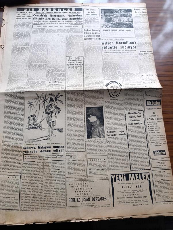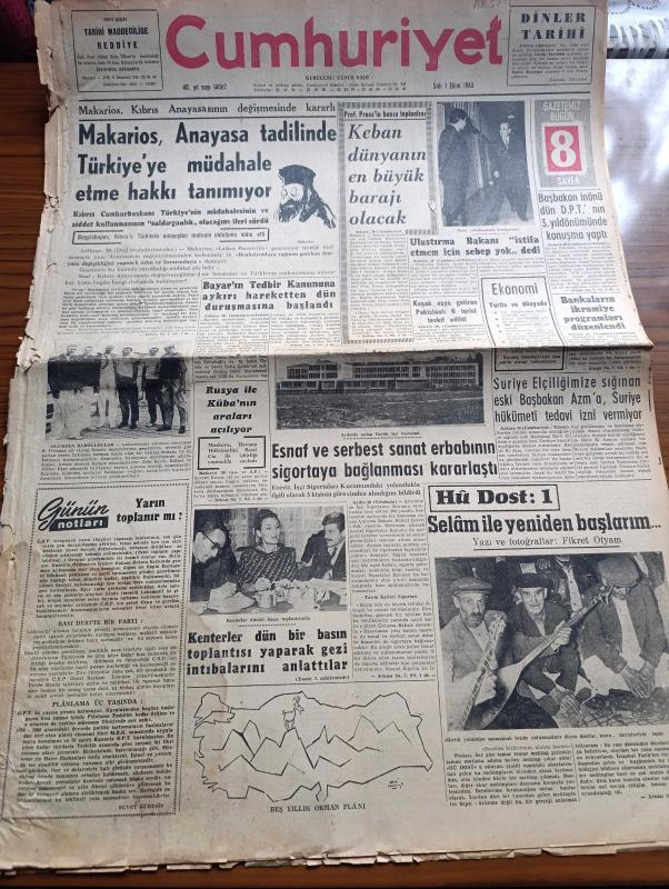 Cumhuriyet Gazetesi - 1 Ekim 1963 - Makarios Anayasa Tadilinde Türkiye'ye Müdahale Etme Hakkı Tanımıyor - Ecvet Güresin Köşe Yazısı - Keban Dünyanın En Büyük Barajın Olacak - Hü Dost Yazan Fikret Otyam Yazı Dizisi - Rusya İle Küba'nın Araları Açılıyor - Ulaştırma Bakanı İhsan Şeref Dura İstifa Etmem İçin Sebep Yok Dedi - Başbakan İsmet İnönü Dün Devlet Planlama Teşkilatının 3. Yıldönümünde Konuşma Yaptı - Müşfik Ve Yıldız Kenter Dün Bir Basın Toplantısı Yaparak Gezi İntibalarını Anlattılar - İlhan Selçuk Köşe Yazısı - Parisli Gözde Çeviren Hatice Vildan Yazı Dizisi - Şehir Tiyatroları Faaliyete Geçiyor - Şanlı Kadırgalar Yazan Feridun Fazıl Tülbentçi Yazı Dizisi - Cezayir'de Berberiler Kahrolsun Diktatör Ben Bella Diye Bağırdılar - Gestapo Şefi Heinrich Müller'in Mezarı Açıldı - New York'un Esrarı Çizgi Roman - Türk Viskisi Tek Rakısı Filiz Çayı Piyasaya Çıktı - Otomasyon Çağı Başlamak Üzere - Dün Gece Yeşilköy Hava Alanına 3 Uçak Dolusu Sporcu Geldi - Galatasaray Beşiktaş Maçı, Yunus Nadi tarafından kaleme alınmıştır. Cumhuriyet Gazetesi - 1 Ekim 1963 - Makarios Anayasa Tadilinde Türkiye'ye Müdahale Etme Hakkı Tanımıyor - Ecvet Güresin Köşe Yazısı - Keban Dünyanın En Büyük Barajın Olacak - Hü Dost Yazan Fikret Otyam Yazı Dizisi - Rusya İle Küba'nın Araları Açılıyor - Ulaştırma Bakanı İhsan Şeref Dura İstifa Etmem İçin Sebep Yok Dedi - Başbakan İsmet İnönü Dün Devlet Planlama Teşkilatının 3. Yıldönümünde Konuşma Yaptı - Müşfik Ve Yıldız Kenter Dün Bir Basın Toplantısı Yaparak Gezi İntibalarını Anlattılar - İlhan Selçuk Köşe Yazısı - Parisli Gözde Çeviren Hatice Vildan Yazı Dizisi - Şehir Tiyatroları Faaliyete Geçiyor - Şanlı Kadırgalar Yazan Feridun Fazıl Tülbentçi Yazı Dizisi - Cezayir'de Berberiler Kahrolsun Diktatör Ben Bella Diye Bağırdılar - Gestapo Şefi Heinrich Müller'in Mezarı Açıldı - New York'un Esrarı Çizgi Roman - Türk Viskisi Tek Rakısı Filiz Çayı Piyasaya Çıktı - Otomasyon Çağı Başlamak Üzere - Dün Gece Yeşilköy Hava Alanına 3 Uçak Dolusu Sporcu Geldi - Galatasaray Beşiktaş Maçı adlı eser Türkçe dilindedir.