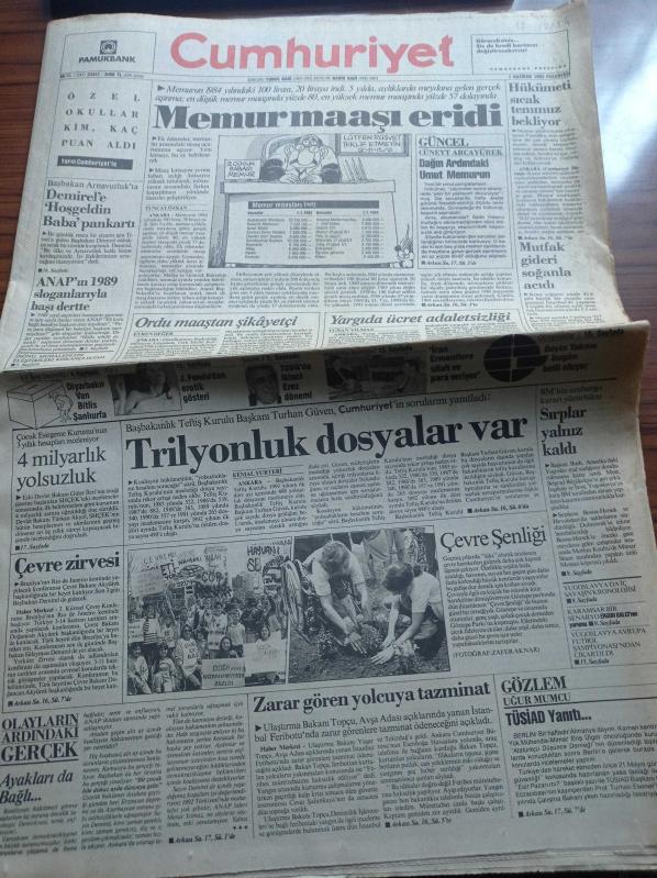 Cumhuriyet Gazetesi - 1 Haziran 1992 - Memur Maaşı Eridi - Yolsuzlukla Alakalı Trilyonluk Dosyalar Var - Başbakan Süleyman Demirel'e Arnavutluk'ta Hoşgeldin Baba Pankartı - Çocuk Esirgeme Kurumu'nun 3 Yıllık Hesapları İnceleniyor - Avşa Adası Açıklarında Yanan Feribotun Yolcularına Tazminat adlı eser Türkçe dilindedir.