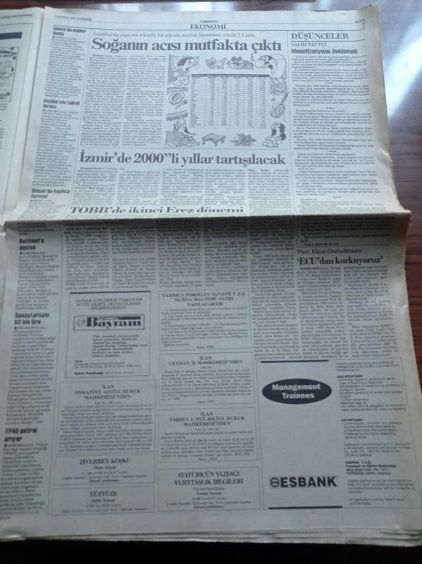 Cumhuriyet Gazetesi - 1 Haziran 1992 - Memur Maaşı Eridi - Yolsuzlukla Alakalı Trilyonluk Dosyalar Var - Başbakan Süleyman Demirel'e Arnavutluk'ta Hoşgeldin Baba Pankartı - Çocuk Esirgeme Kurumu'nun 3 Yıllık Hesapları İnceleniyor - Avşa Adası Açıklarında Yanan Feribotun Yolcularına Tazminat adlı eser, Kitap > Süreli Yayınlar > Gazeteler kategorisinde İkinci El olarak satıştadır.