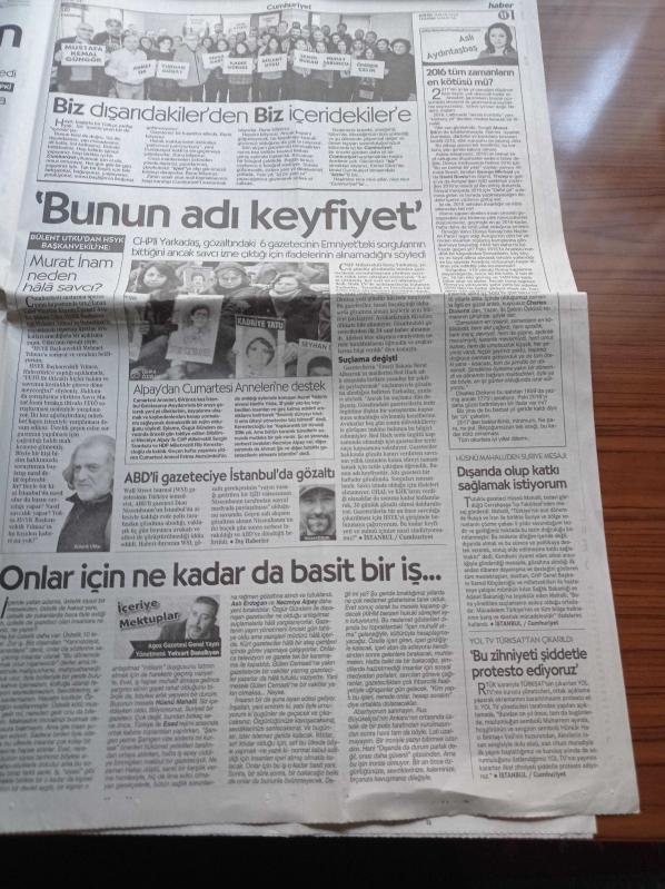 Cumhuriyet Gazetesi - 1 Ocak 2017 - Altınordu Takımı Büyüklere Kafa Tutuyor - Aşkın Nur Yengi - Ahmet Şık Avukatıyla Görüştürülmedi - Savcı İzne Çıktı İfade Almıyor - 2016 Özgürlük Yılı Olsun - TV Çöpçatanları İsyan Ettirdi - Kemal Kılıçdaroğlu Demokrasiyi Ona İnanan Herkesle Savunacağız adlı eser Türkçe dilindedir.