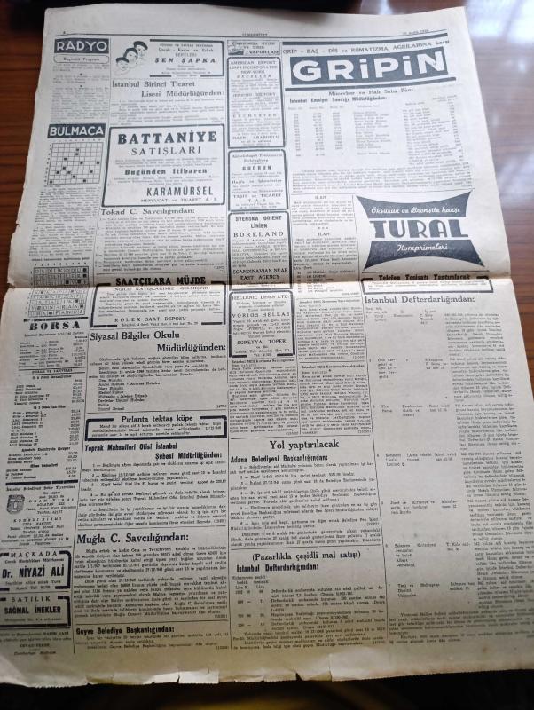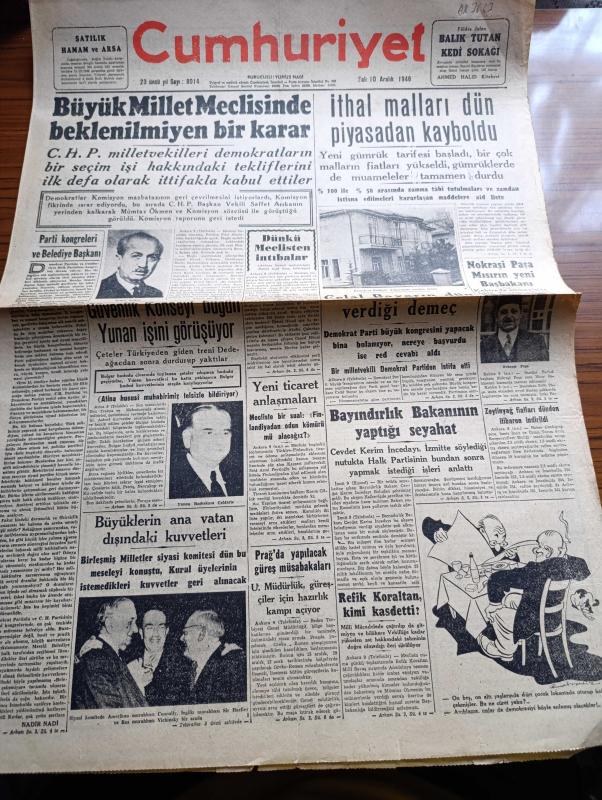 Cumhuriyet Gazetesi - 10 Aralık 1946 - Parti Kongreleri Ve Belediye Başkanı Yazanlar Nadir Nadi Köşe Yazısı - Büyük Millet Meclisinde Beklenilmeyen Bir Karar - CHP Milletvekilleri Demokratların Bir Seçim İşi Hakkındaki Tekliflerini İlk Defa Olarak İttifaklar Kabul Ettiler - İthal Malları Dün Piyasadan Kayboldu - Celal Bayar'ın Dün Verdiği Demeç - Nokraşi Paşa Mısırın Yeni Başbakanı - Amerikan Muharrası Connaly İngiliz Murahhası Sir Harfley Ve Rus Muharrası Vichinsky Birarada Fotoğraf - Refik Koraltan Kimi Kastetti - Türk Güreşi Yazan İsmail Habib Sevük - Lelia Gousseau Konseri Melek Sinemasında - Allah'ın Kudreti Filmi Perşembe Akşamı Lale Sinemasında - Yavuz Sultan Selim Ağlıyor Yazan Feridun Fazıl Tülbentçi Yazı Dizisi - Amcabey Ve Kazalar Çizen Cemal Nadir - Gripin - Şen Şapka - Bugünkü Radyo Programı - Rolex Saat Deposu - Limanımıza Gelen Ve Giden Vapurlar - Tural Öksürük ve Bronşite Karşı - Çocuk Hastalıkları Mütehassısı Doktor Niyazi Ali - İstanbul Belediyesi Şehir Tiyatroları adlı eser, Kitap > Süreli Yayınlar > Gazeteler > Türkiye > Genel > Günlük kategorisinde İkinci El olarak satıştadır.