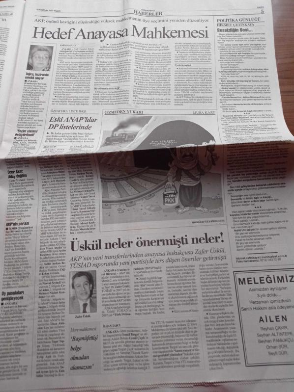 Cumhuriyet Gazetesi - 10 Haziran 2007 - Fenerbahçe'de Yıldızlar Geçidi - AKP'nin İnadı Rejimi Sarsıyor - Cenazede Hükümete Protesto - Mustafa Sarıgül'den Ortak Hareket Mesajı adlı eser Türkçe dilindedir.