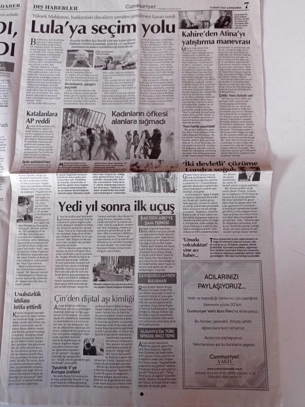 Cumhuriyet Gazetesi - 10 Mart 2021 - Asist İşi Rachid Ghezall'dan Sorulur - Türkiye'nin Rol Modeli Sümeyye Boyacı - Akkuyu Nükleer Güç Santrali Türkiye'nin Kabusu Olacak - Bir Yıldız Daha Kaydı Rasim Öztekin - Ferhan Şensoy - Büyük Ortadoğu Projesi Papa Pulunda - Cihangir İslam CHP'de - Koronavirüs İle Geçen Bir Yıl adlı eser Türkçe dilindedir.