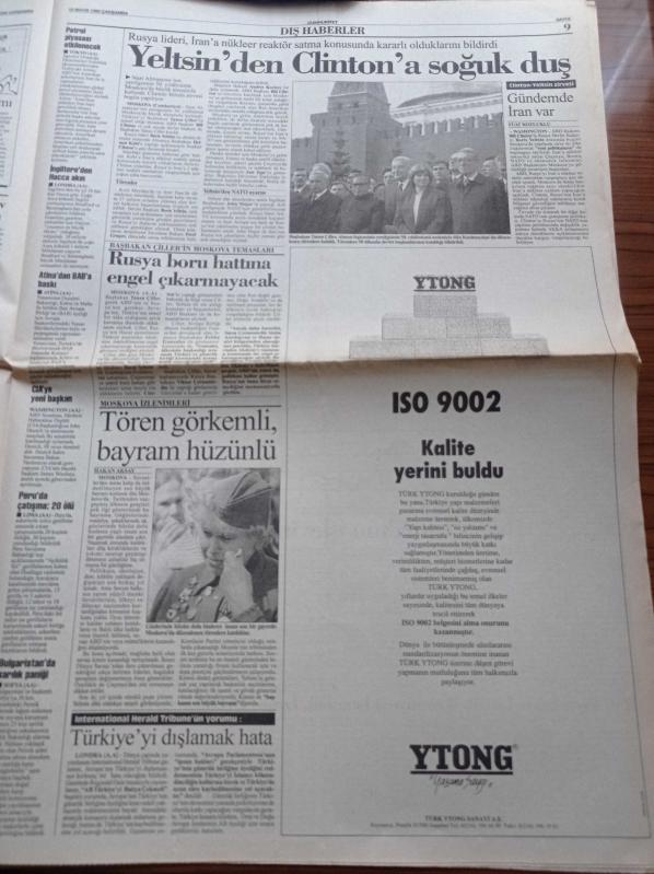 Sayfa Boyutu: 38*56cm Sayfa Sayısı: 18 Cumhuriyet Gazetesi Yıpranma, sararmalar, kupon kesiği ve yırtılmalar zamana bağlı olarak görülebilir