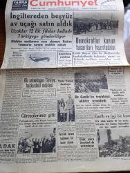 Sayfa Boyutu : 42*58 cm Sayfa Sayısı: 4 Cumhuriyet Gazetesi Yıpranma, sararmalar, kupon kesiği ve yırtılmalar zamana bağlı olarak görülebilir Bilgilendirme : Tam takım gazetedir