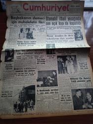 Cumhuriyet Gazetesi - 10 Şubat 1957 - Başbakan Adnan Menderes'in Demeci İçin Muhalefetin Fikri - İsrail'de Nümayişler Yapılıyor - Otomobil İthali Yasağında Son Açık Kapı Da Kapatıldı - Anadolu Ajansı Yeni Bir Veçhe Verilecek - Dün Gece 4 Macar Mültecisi Geldi - Kral Suud Amerika'dan Ayrıldı - Milliyetçi Çin Hariciye Vekili Yeh İstanbula Geldi - Ankara'da Rock And Roll - Kıbrıs'ta Tedhişçiler Çocukları Öne Sürüyor - İdam Sehpasında Can Veren Devletliler Derleyen Cemaleddin Saraçoğlu Yazı Dizisi - Despot Yazan Reşat Enis Yazı Dizisi - İki Adaletsizlik Yazan Hasan Ali Yücel Köşe Yazısı - Brigitte Bardot Fotoğraf - Hindistan Başdelegesi Komünist Mi - Rami Beyin Ceketi Yazan Burhan Felek - Resimli Romanımız Zırhlı Haydud Çeviren Mazhar Kunt Yazı Dizisi - Galatasaray Beyoğluspor'u 4 0 Yendi - Demiryolları Takımımız Avusturyayı 7 1 Yendi - Fenerbahçe Bugün Adalet İle Karşılaşıyor - Kara Harp Okulu Şampiyon - Küçükayasofya'nın Kulübü Çayı - Bambi Talk Pudrası - Sümerbank adlı eser, Kitap > Süreli Yayınlar > Gazeteler > Türkiye > Genel > Günlük kategorisinde İkinci El olarak satıştadır.