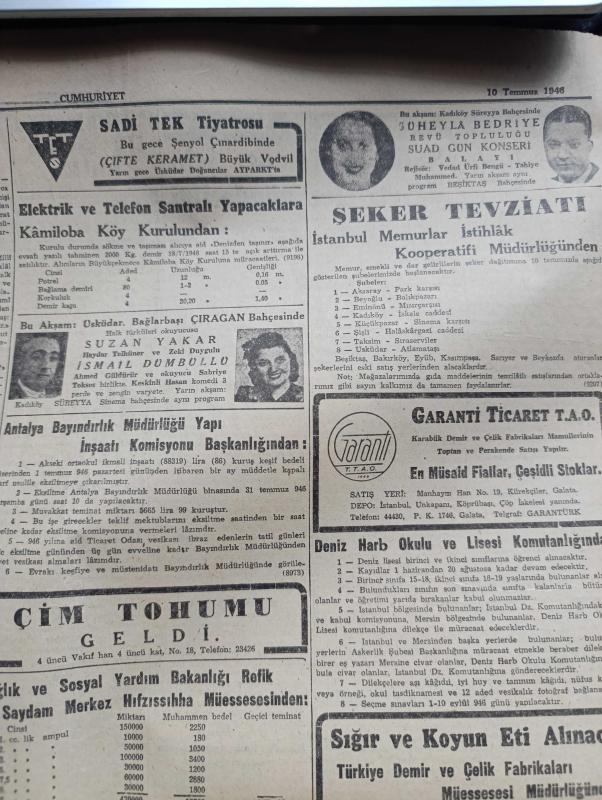Cumhuriyet Gazetesi - 10 Temmuz 1946 - Başbakan'ın İlk Seçim Nutku Yazan Abidin Daver Köşe Yazısı - Ankara Valisi Nevzad Tandoğan İntihar Etti - Celal Bayar Bugün Bir Beyanname Neşredecek - Nevzad Tandoğan'ın Son Sözleri Ve Son Dakikaları - Mersin'de Demokratları Tehdit Eden Adam Mahkum Oldu - İstanbul'da Dünkü Seçim Faaliyeti - İzmir'de Seçim Faaliyeti - Cemal Nadir Karikatür - Paris'te Gördüklerim Yazan Muhsin Ertuğrul - Mareşal Fevzi Çakmak Yazan Kemal Salih Sel - Darüşşafaka Mezunlarını Cemiyeti Mehtab Gezisi Yüksek Sanatkar Hamiyet Yüceses - Sonsuz Panayır Yazan Halide Edip Adıvar - Süheyla Bedriye Revü Topluluğu - Sadi Tek Tiyatrosu - Poker Play Traş Bıçağı - Caddebostan Ayten Gazinosunda Bu Akşam Münir Nurettin Konseri - Bugünkü Radyo Programı - Bulmaca - Disk Lastikleri - Ziraat Bankası - Zeki Can Çil İlacı - Garanti Bankası - Cevdet Kerim İncedayı - Çaldaris Londra'da Yunan Kralı Jorj İle Uzun Bir Görüşme Yaptı, Yunus Nadi tarafından kaleme alınmıştır. Cumhuriyet Gazetesi - 10 Temmuz 1946 - Başbakan'ın İlk Seçim Nutku Yazan Abidin Daver Köşe Yazısı - Ankara Valisi Nevzad Tandoğan İntihar Etti - Celal Bayar Bugün Bir Beyanname Neşredecek - Nevzad Tandoğan'ın Son Sözleri Ve Son Dakikaları - Mersin'de Demokratları Tehdit Eden Adam Mahkum Oldu - İstanbul'da Dünkü Seçim Faaliyeti - İzmir'de Seçim Faaliyeti - Cemal Nadir Karikatür - Paris'te Gördüklerim Yazan Muhsin Ertuğrul - Mareşal Fevzi Çakmak Yazan Kemal Salih Sel - Darüşşafaka Mezunlarını Cemiyeti Mehtab Gezisi Yüksek Sanatkar Hamiyet Yüceses - Sonsuz Panayır Yazan Halide Edip Adıvar - Süheyla Bedriye Revü Topluluğu - Sadi Tek Tiyatrosu - Poker Play Traş Bıçağı - Caddebostan Ayten Gazinosunda Bu Akşam Münir Nurettin Konseri - Bugünkü Radyo Programı - Bulmaca - Disk Lastikleri - Ziraat Bankası - Zeki Can Çil İlacı - Garanti Bankası - Cevdet Kerim İncedayı - Çaldaris Londra'da Yunan Kralı Jorj İle Uzun Bir Görüşme Yaptı adlı eser Türkçe dilindedir.