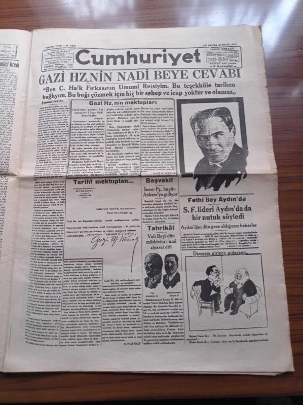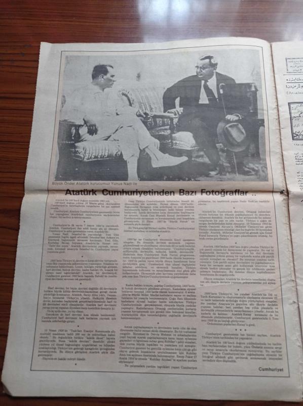 Cumhuriyet Gazetesi 100. Yıl Özel Gazetesi - Tıpkıbasım -19 Mayıs 1881 19 Mayıs 1981 - Cumhuriyet Gazetesinin 7 Mayıs 1924 Günü Çıkan İlk Sayısı Tıpkı Basım - Atatürk Cumhuriyetinden Bazı Fotoğraflar - Gazi Hz.nin Nadi Beye Cevabı - İsmet Paşa ve Şükrü Kaya Bey Ankara'ya Gittiler - Eski Paraların Tebdili Muamelesi Dün Nihayet Buldu - İll Dil Kurultayı Bugün Toplanıyor - Bugün Merasimle Cemiyeti Akvama Giriyoruz - Onuncu Yıl Bayramı - Eski Devirlerin Artığı Lakap Ve Unvanlar Kaldırıldı - Türk Kadını Hakların En Büyüğünü Aldı - Selim Sırrı adlı eser Türkçe dilindedir.