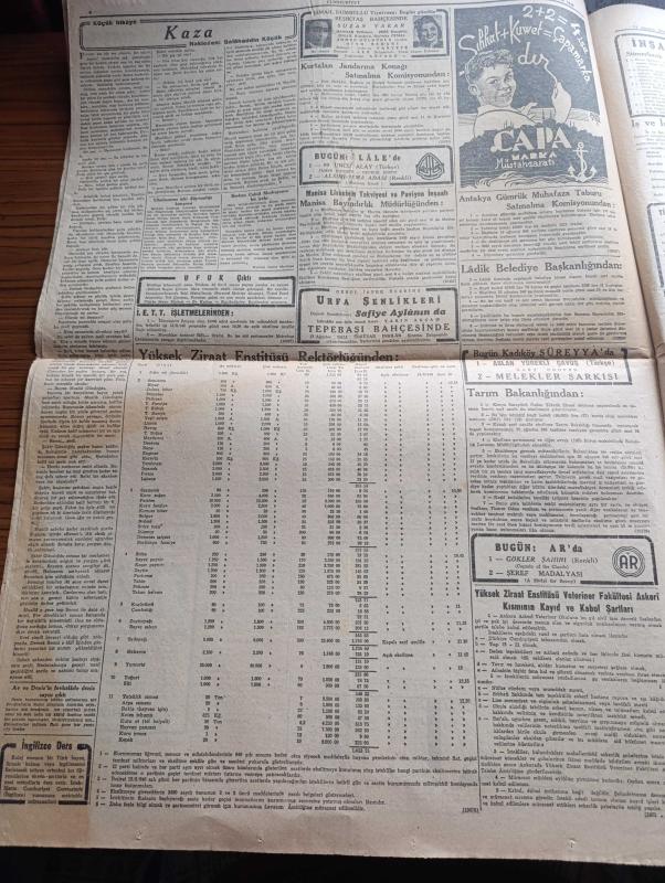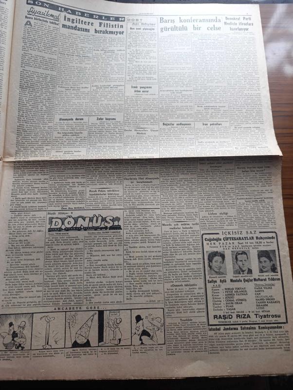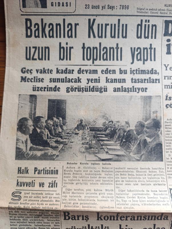 Cumhuriyet Gazetesi - 11 Ağustos 1946 - Halk Partisi'nin kuvveti ve zaafı yazan Nadir Nadi Başmakale - bakanlar kurulu Dün uzun bir toplantı fotoğraf - Demokrat Parti mecliste itirazlara hazırlanıyor - Demokrat Parti milletvekilleri meclise geliyorlar fotoğraf - Zafer Bayramı 30 Ağustos'ta dumlupınar'da büyük tören yapılacak - İngiltere Filistin mandasını bırakmıyor - Tel Avivde Kaçak silahların bulunduğu Mahal muhafaza altında fotoğraf - boğazlar andlaşması - İzmir yangınını örten esrar - Cemal Nadir Karikatür - haftanın şakaları yazan Burhan Felek - Faide Yıldız Üsküdar yakartepe Gazinosu'nda - Safiye Ayla Mustafa Çağlar Mefharet Yıldırım Cağaloğlu Çiftesaraylar bahçesinde - Devlet Hava yolları umum müdürü Ferruh Şahinbaş - Başbakan Recep Peker tebriklere teşekkürlerini bildiriyor - milli kalkınma partisinin İzmir şubesi yeni merkezi tanımıyor - Charlie Chaplin'in Büyük diktatör filmi Almanya'da iyi karşılanmadı - Hitlerci gençlerin bazıları affedilecek - çapamarka adlı eser, Kitap > Süreli Yayınlar > Gazeteler > Türkiye > Genel > Günlük kategorisinde İkinci El olarak satıştadır.