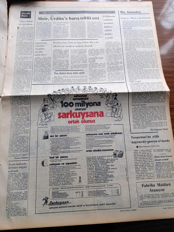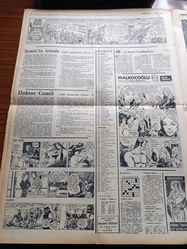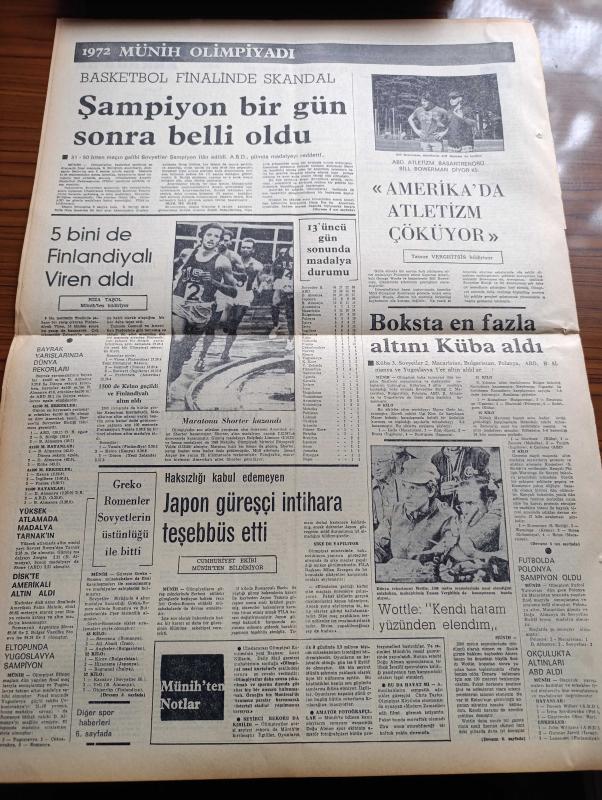 Cumhuriyet Gazetesi - 11 Eylül 1972 - Süleyman Demirel İstanbul Adalet Partisi İl Kongresinde Konuştu Devleti Yeniden Kurmak Zorunlu - Olimpiyat Köyünde Silah Sesleri Heyecan Yarattı - 19 Ülkenin Gazetecileri Basın Özgürlüğüne Sorununu Tartışıyor - 1958'de Temeli Atılan İzmir Tiyatro Sarayı Ortada Kaldı - 50. Yılda Trafik Suçlarının Da Affı İstendi - Faruk Ilgaz İl Başkanı Seçildi - Çarpışan Çarklar Yazan Şevket Süreyya Aydemir Köşe Yazısı - Oktay Akbal Köşe Yazısı - Malkoçoğlu Konu Ve Resim Ayhan Başoğlu - Dişi Bond Çizgi Roman - İzmir'in İçinde Samim Kocagöz'ün Romanı Yazı Dizisi - Doktor Cemil Yıldız İncesu'nun Romanı Yazı Dizisi - Abdülcanbaz Çizen Turhan Selçuk - Fenerbahçe Adana'yı Osman İle Yendi - Boksta En Fazla Altını Küba Aldı - 1972 Münih Olimpiyatı - Basketbol Finalinde Skandal Şampiyon Bir Gün Sonra Belli Olacak, Yunus Nadi tarafından kaleme alınmıştır. Cumhuriyet Gazetesi - 11 Eylül 1972 - Süleyman Demirel İstanbul Adalet Partisi İl Kongresinde Konuştu Devleti Yeniden Kurmak Zorunlu - Olimpiyat Köyünde Silah Sesleri Heyecan Yarattı - 19 Ülkenin Gazetecileri Basın Özgürlüğüne Sorununu Tartışıyor - 1958'de Temeli Atılan İzmir Tiyatro Sarayı Ortada Kaldı - 50. Yılda Trafik Suçlarının Da Affı İstendi - Faruk Ilgaz İl Başkanı Seçildi - Çarpışan Çarklar Yazan Şevket Süreyya Aydemir Köşe Yazısı - Oktay Akbal Köşe Yazısı - Malkoçoğlu Konu Ve Resim Ayhan Başoğlu - Dişi Bond Çizgi Roman - İzmir'in İçinde Samim Kocagöz'ün Romanı Yazı Dizisi - Doktor Cemil Yıldız İncesu'nun Romanı Yazı Dizisi - Abdülcanbaz Çizen Turhan Selçuk - Fenerbahçe Adana'yı Osman İle Yendi - Boksta En Fazla Altını Küba Aldı - 1972 Münih Olimpiyatı - Basketbol Finalinde Skandal Şampiyon Bir Gün Sonra Belli Olacak adlı eser Türkçe dilindedir.