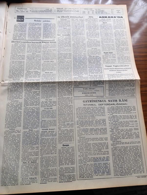 Sayfa Boyutu : 42*58 cm Sayfa Sayısı: 8 Cumhuriyet Gazetesi Yıpranma, sararmalar, kupon kesiği ve yırtılmalar zamana bağlı olarak görülebilir Not: Cilt Çıkmasıdır Bilgilendirme : Tam takım gazetedir