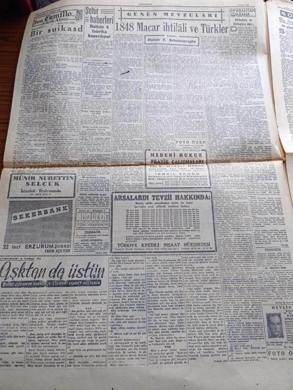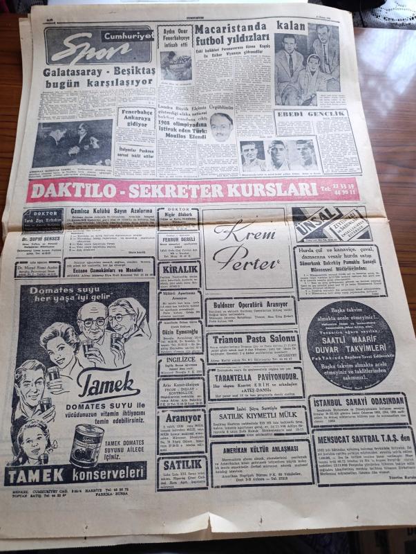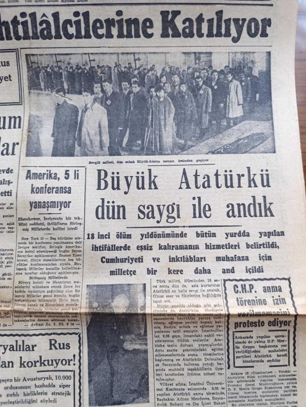 Cumhuriyet Gazetesi - 11 Kasım 1956 - Rus Askeri Macar İhtilalcilerine Katılıyor - Milliyetçiler Dün Uranyum Madenlerini Havaya Uçurdular - Büyük Atatürk'ü Dün Saygı İle Andık - Sevgili Milleti Dün Sabah Büyük Atanın Mezarı Önünden Geçiyor Fotoğraf - Amerika 5 Li Konferansa Yanaşmıyor - Cumhurbaşkanı Celal Bayar Anıtkabir'e Çelenk Koyarken Fotoğraf - Suudi Arabistan Kralının Kardeşi 50 Bin Dolara Kiralanan Uçakla Geldi Fotoğraf - İsrail 50 Milyon Dolarlık Mısır Silahı Ele Geçirdi - başbakan Adnan Menderes Dün Amerikan İngiliz Elçilerine Görüştü - Gaz Benzin Ve Motorin Tevzie Tabi Tutuluyor - Don Camillo'nun Küçük Âlemi Yazan G. Guareschi Yazı Dizisi - Hariçte Sekiz Fabrika Kapatılıyor - Şekerbank İkramiyesini Zeki Müren Kazandı Fotoğraf - Bursa Bir Tiyatro Binasına Kavuşuyor - Haftanın Şakaları Yazan Burhan Felek - Tarihin Tarihi İmparatoriçe Ojeni Yazan Alain Decause adlı eser, Kitap > Süreli Yayınlar > Gazeteler > Türkiye > Genel > Günlük kategorisinde İkinci El olarak satıştadır.