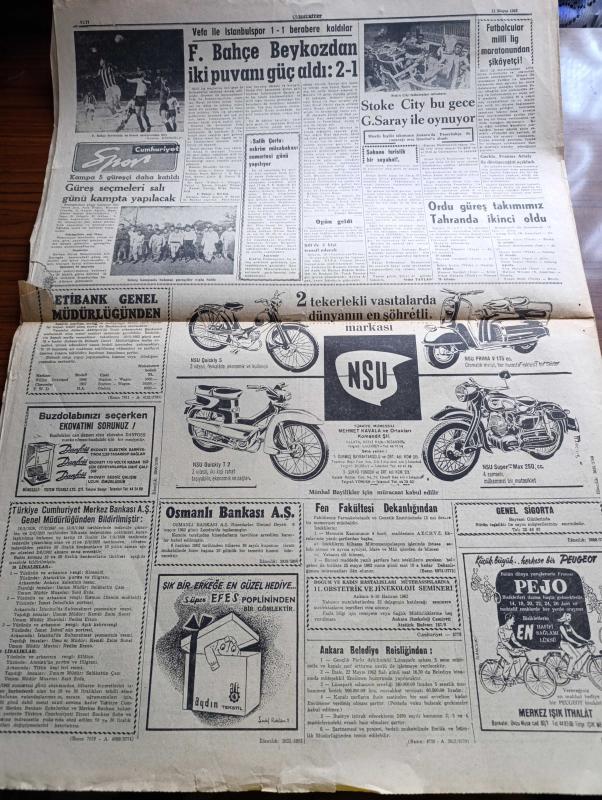 Sayfa Boyutu : 42*58 cm Sayfa Sayısı: 6 Cumhuriyet Gazetesi Yıpranma, sararmalar, kupon kesiği ve yırtılmalar zamana bağlı olarak görülebilir Bilgilendirme : Tam takım gazetedir