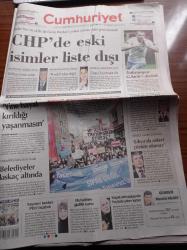 Cumhuriyet Gazetesi - 11 Nisan 2011 - Trabzonspor Galatasaray'ı Devirdi - CHP'de Eski İsimler Liste Dışı - Önder Sav - Mustafa Balbay İzmir Adayı - 12 Eylül'ün Mağdurları Temkinli - Liseli Gençlerin İsyanı - Muhalif Belediyelere Baskı - NATO Genel Sekreteri Libya'da Askeri Çözüm Olamaz - Kaçak Otel Açılışında Heykele Yıkım Kararı - Selahattin Demirtaş Hakkari'den Aday - Leyla Zana adlı eser, Kitap > Süreli Yayınlar > Gazeteler kategorisinde İkinci El olarak satıştadır.