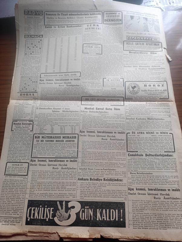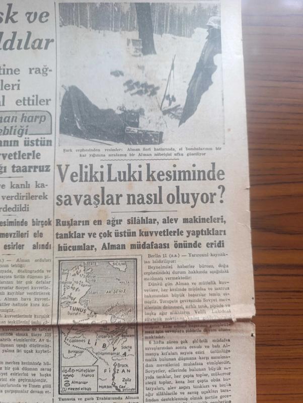 Cumhuriyet Gazetesi - 12 İkincikanun (Ocak) 1943 - İki taraflı güçlükler Cumhuriyet başmakale - yurtta karakış başladı fotoğraf - Ruslar Georgievsk Ve Piatigorsku geri aldılar - Veliki Luiki mevsiminde savaşlar nasıl oluyor - şark cephesinden fotoğraflar - Alman harp tebliği düşmanın Üstün kuvvetlerle yaptığı taarruz ağır ve Kanlı kayıplar verdirilerek tardedildi - general Giraud'un teşkil edeceği Ordu - atlantik'teki büyük savaş - Varlık vergisi tahsilatı dün İstanbul'da 1.343.737 lira ödendi - Harbin dördüncü yılında tarafsız Türkiye - Askeri Vaziyet Yazan Emekli General H. Emir Erkilet Yazı Dizisi - Fransa'nın Alman işgaline geçen limanlarında makineli muhafız birlikleri fotoğraf - Kahire sokaklarında filmi Çemberlitaş sinemasında - kanlı meydan filmi yalnız İpek sinemasında - beni tarih kitapları müsabakası - haftanın muayen günlerinde halka balık verilecek - kar izleri örttü yazan Henri Bordeaux Yazı Dizisi - korsan Kaptan filmi Perşembe akşamı elhamra sinemasında - altın 31 lira adlı eser, Kitap > Süreli Yayınlar > Gazeteler > Türkiye > Genel > Günlük kategorisinde İkinci El olarak satıştadır.
