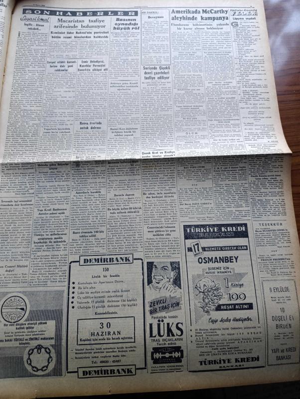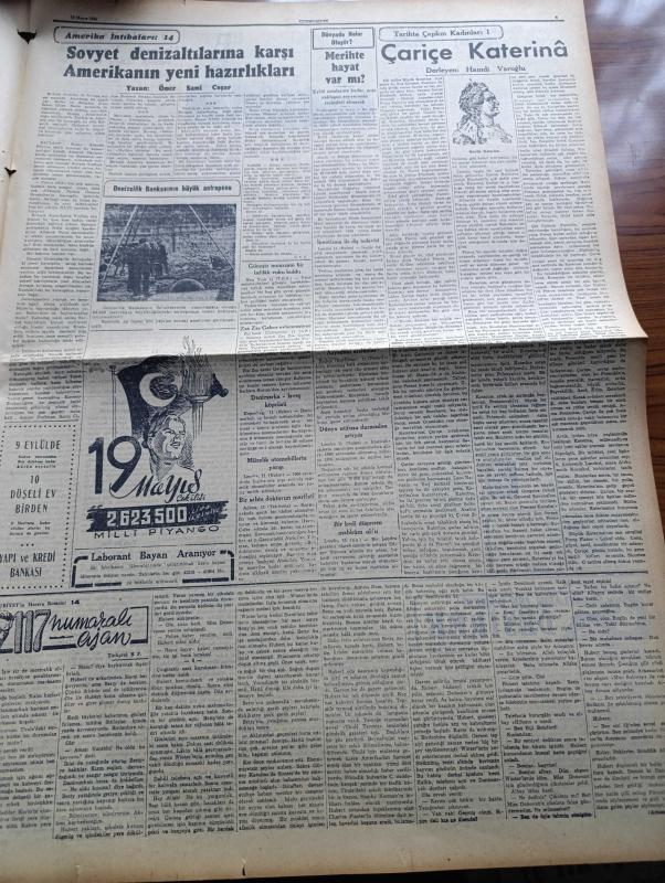 Cumhuriyet Gazetesi - 12 Mayıs 1954 - Bari Sen Yap Yazan Nadir Nadi Köşe Yazısı - Millet Meclisinin İlk İçtimai İçin Hazırlık - Halk Partisi Kurultayı Eylül İçinde Toplanacak - Çocuk Kral Ve Kraliçe Acaba Kimler Olacak - Sait Faik Abasıyanık Evvelki Gece Vefat Etti - Hindiçini'de Komünist Taarruzu Bekleniyor - Boğazda Asma Köprü - Demirperde Gerisinde Kızılların Korkusu - İnce Memed Yazan Yaşar Kemal Yazı Dizisi - Sovyet Rusya'da Çok Mühim Bir Röportaj Yazan Marshall Mac Duffie Yazı Dizisi - Macaristan'da Komünist Lider Rakosi'nin Portreleri Bütün Resmi Binalardan Kaldırıldı - Suriye'de Edip Çiçekli Devri Gazeteleri Tasfiye Ediliyor - Amerika'da McCarthy Aleyhinde Kampanya - Said Faik Abasıyanık'ın Bir Hikayesi Sivri Ada Geceleri - Büyük Adli Hatalar Çeviren Mazhar Kunt Yazı Dizisi - Tarihte Çapkın Kadınlar 1 Çariçe Katerina Derleyen Hamdi Varoğlu Yazı Dizisi - Sarayların Aşk İlahesi Desiree Yazan Anne Marie Selinko Yazı Dizisi - 1953 1954 Yunus Nadi Mükafatı En Güzel Hikaye adlı eser, Kitap > Süreli Yayınlar > Gazeteler > Türkiye > Genel > Günlük kategorisinde İkinci El olarak satıştadır.