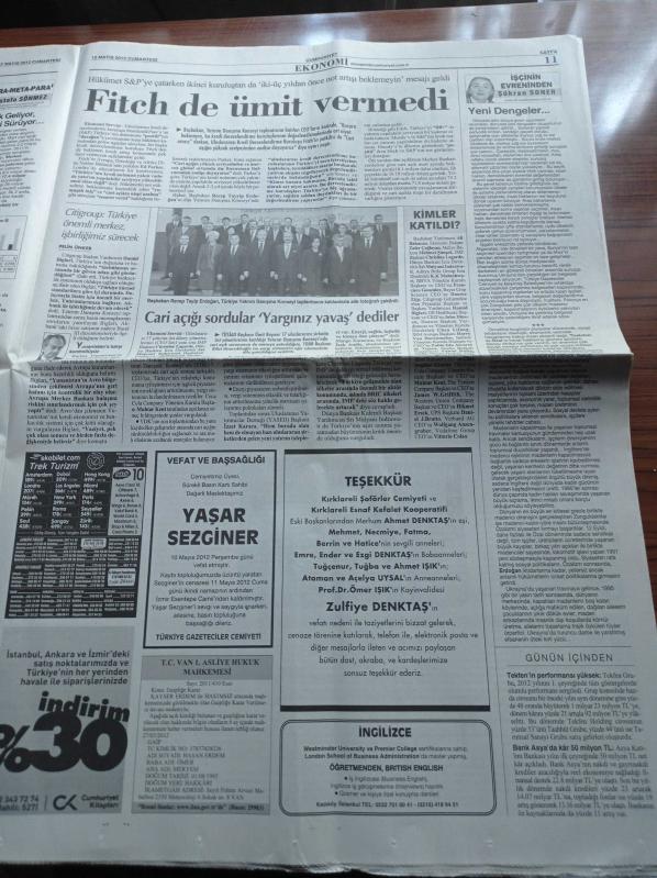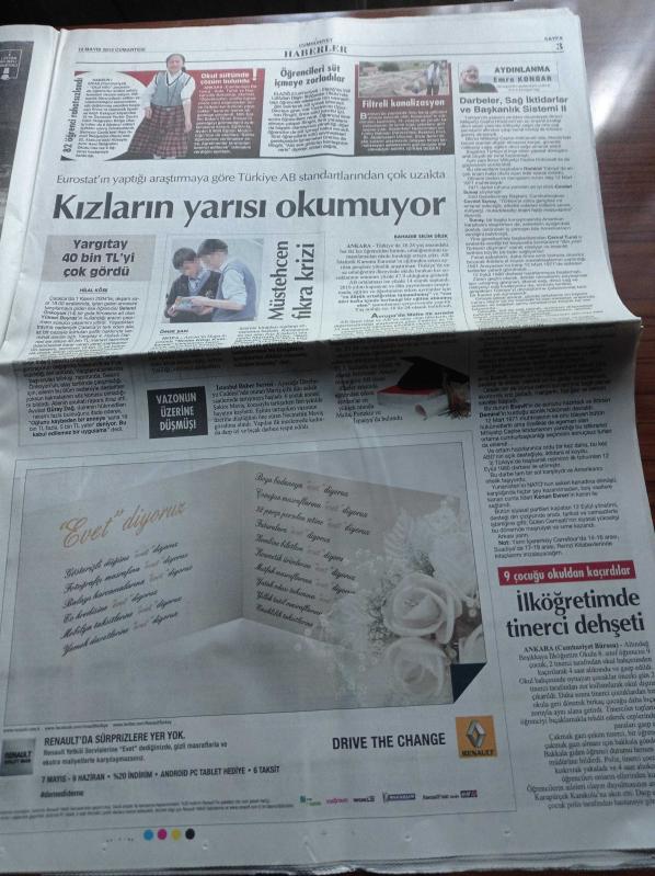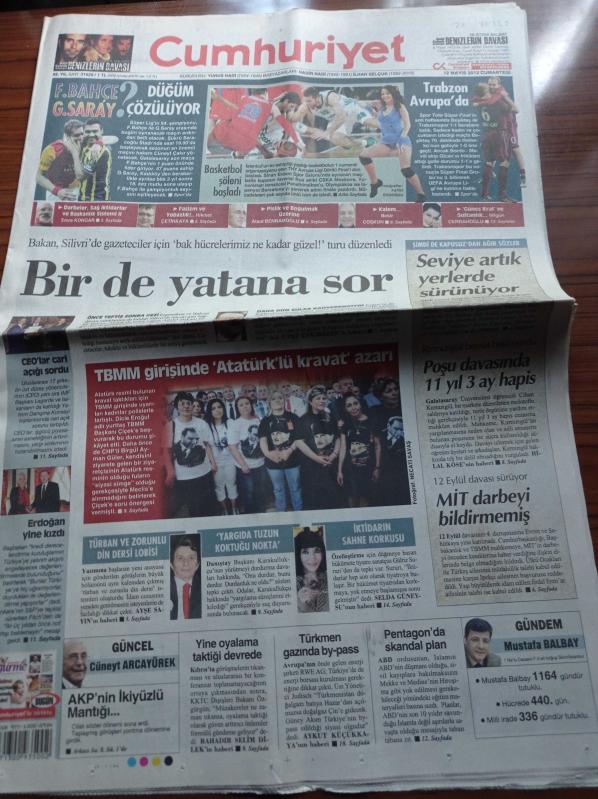Cumhuriyet Gazetesi - 12 Mayıs 2012 - Kadıköy'de Süper Final Fenerbahçe Galatasaray - Avrupa Bileti Trabzon'un- Solaklı'da HES 'e Geçit Yok - Adalet Bakanı Sadullah Ergin Hapishane Turu Düzenledi - AKP Genel Başkanı Salih Kapusuz - TBMM Girişinde Atatürk Kravat Azarı - 12 Eylül Davası Sürüyor Mit Darbeyi Bildirmemiş- Türban Ve Zorunlu Din Dersi Lobisi adlı eser Türkçe dilindedir.