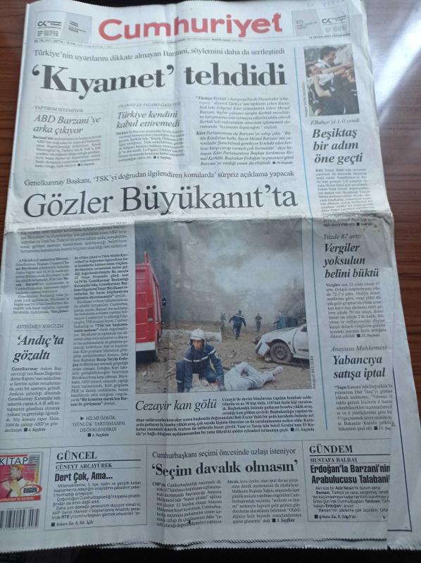 Cumhuriyet Gazetesi - 12 Nisan 2007 - Beşiktaş Fenerbahçe'yi Yendi - Türkiye'nin Uyarılarını Dikkate Almayan Mesut Barzani Söylemini Daha Da Sertleştirdi Kıyamet Tehdidi - ABD Barzani'ye Arka Çıkıyor - Gözler Yaşar Büyükanıt'ta - Anayasa Mahkemesi Yabancıya Satışa İptal - Asteğmen Sorguda Andıç'ta Gözaltı adlı eser, Kitap > Süreli Yayınlar > Gazeteler kategorisinde İkinci El olarak satıştadır.