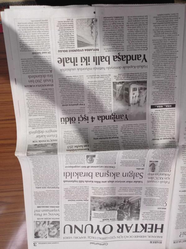 Sayfa Boyutu: 38*56cm Sayfa Sayısı: 16 Cumhuriyet Gazetesi Yıpranma, sararmalar, kupon kesiği ve yırtılmalar zamana bağlı olarak görülebilir