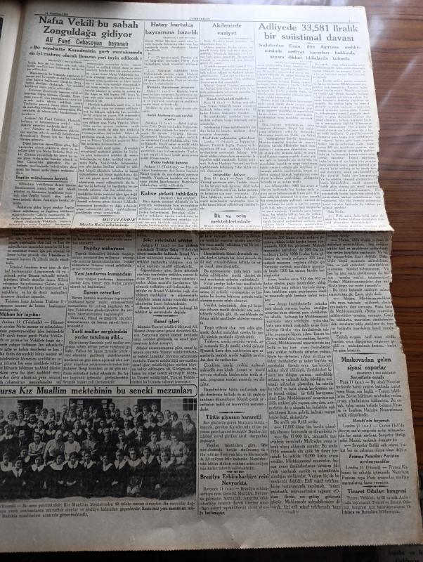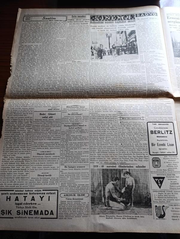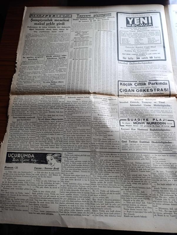 Cumhuriyet Gazetesi - 12 Temmuz 1939 - Basın Birliği Kongresi münasebetiyle matbuat yazan Nadir Nadi Başmakale - Akdeniz'de Vaziyet İtalya 12 adada büyük askeri hazırlık yapıyor - Nafia vekili Ali Fuat Cebesoy bu sabah Zonguldak'a gidiyor - Hatay'ın Kurtuluş bayramı'na hazırlık - Paris elçimiz Suat Davaz Berlin elçimiz Hamdi Arpağ ve Moskova elçimiz Zekai Apaydın fotoğraf - adliyede 33.581 liralık bir suistimal davası - Bulgaristan başvekili Köseivanof'un belgrad'ta yaptığı müzakereler - Mahfiruz Sultan Yazan Kadircan Kaflı Yazı Dizisi - CHP parti müfettişi Tevfik Fikret Sılay dün Haydarpaşa garından çıkarken fotoğraf - işte insan yazan Peyami Safa - Nazi Kongresi eylülde toplanacak - Mareşal Fevzi Çakmak Muğla'da - küçük hikaye saatim Mark Twain'den - hollywood'daki maskeli haydut'un akıbeti - Ermeni komitacıları hala sergüzeşt peşinde geziyor - Tarzan'ın Oğlu filmi fotoğraf - 35 er puanı olan Galatasaray ile Demirspor takımlarından hangisinin şampiyon olacağı üzerine verilen karar, Yunus Nadi tarafından kaleme alınmıştır. Cumhuriyet Gazetesi - 12 Temmuz 1939 - Basın Birliği Kongresi münasebetiyle matbuat yazan Nadir Nadi Başmakale - Akdeniz'de Vaziyet İtalya 12 adada büyük askeri hazırlık yapıyor - Nafia vekili Ali Fuat Cebesoy bu sabah Zonguldak'a gidiyor - Hatay'ın Kurtuluş bayramı'na hazırlık - Paris elçimiz Suat Davaz Berlin elçimiz Hamdi Arpağ ve Moskova elçimiz Zekai Apaydın fotoğraf - adliyede 33.581 liralık bir suistimal davası - Bulgaristan başvekili Köseivanof'un belgrad'ta yaptığı müzakereler - Mahfiruz Sultan Yazan Kadircan Kaflı Yazı Dizisi - CHP parti müfettişi Tevfik Fikret Sılay dün Haydarpaşa garından çıkarken fotoğraf - işte insan yazan Peyami Safa - Nazi Kongresi eylülde toplanacak - Mareşal Fevzi Çakmak Muğla'da - küçük hikaye saatim Mark Twain'den - hollywood'daki maskeli haydut'un akıbeti - Ermeni komitacıları hala sergüzeşt peşinde geziyor - Tarzan'ın Oğlu filmi fotoğraf - 35 er puanı olan Galatasaray ile Demirspor takımlarından hangisinin şampiyon olacağı üzerine verilen karar adlı eser Türkçe dilindedir.