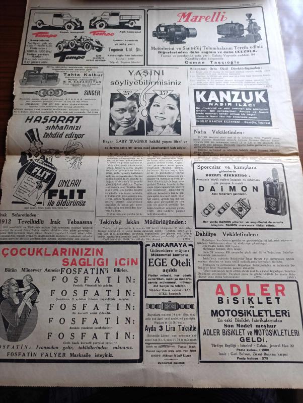 Cumhuriyet Gazetesi - 12 Temmuz 1939 - Basın Birliği Kongresi münasebetiyle matbuat yazan Nadir Nadi Başmakale - Akdeniz'de Vaziyet İtalya 12 adada büyük askeri hazırlık yapıyor - Nafia vekili Ali Fuat Cebesoy bu sabah Zonguldak'a gidiyor - Hatay'ın Kurtuluş bayramı'na hazırlık - Paris elçimiz Suat Davaz Berlin elçimiz Hamdi Arpağ ve Moskova elçimiz Zekai Apaydın fotoğraf - adliyede 33.581 liralık bir suistimal davası - Bulgaristan başvekili Köseivanof'un belgrad'ta yaptığı müzakereler - Mahfiruz Sultan Yazan Kadircan Kaflı Yazı Dizisi - CHP parti müfettişi Tevfik Fikret Sılay dün Haydarpaşa garından çıkarken fotoğraf - işte insan yazan Peyami Safa - Nazi Kongresi eylülde toplanacak - Mareşal Fevzi Çakmak Muğla'da - küçük hikaye saatim Mark Twain'den - hollywood'daki maskeli haydut'un akıbeti - Ermeni komitacıları hala sergüzeşt peşinde geziyor - Tarzan'ın Oğlu filmi fotoğraf - 35 er puanı olan Galatasaray ile Demirspor takımlarından hangisinin şampiyon olacağı üzerine verilen karar adlı eser, Kitap > Süreli Yayınlar > Gazeteler > Türkiye > Genel > Günlük kategorisinde İkinci El olarak satıştadır.