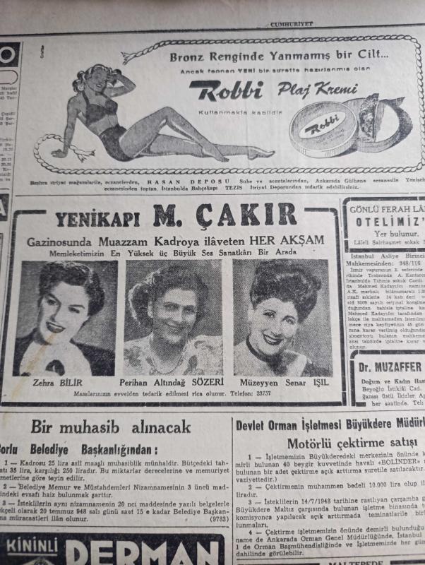 Cumhuriyet Gazetesi - 12 Temmuz 1948 - Berlin çıkmazından çıkmak nasıl mümkün olacak Cumhuriyet Başmakale - Demokrat Parti'nin son toplantısında İzmir delegelerinin terzi - Adnan Menderes Fuat Köprülü ve Fevzi Lütfi Karaosmanoğlu haklarında yapılan neşriyata cevap verdiler - Ankara'da yapılan Türk Amerikan görüşmelerine Amerika Büyükelçisi Wilson General Brid General Hoag Ve Amiral Settle katıldılar - Berline dair sovyetlerin cevabı belli oldu - bir büyük devlet Araplara silah veriyor - İtalyanlar Fenerbahçe'yi 2-1 yendiler fotoğraf - olimpiyatlarda atletizmi kimler kazanabilecek - Emirgan korusu'na halkın girmesi yasak - ölümünün yıl dönümünde Mimar Kemalettin'i anarken yazan yüksek Mimar Sedat Çetintaş - vuslat yine mi yaza Burhan Felek - geçen yıla ait keşifler yazan Rıdvan Tezel - gazetecilik okulu yazan profesör Hasan Refik Ertuğ - Zehra Bilir Perihan Altındağ Sözeri ve Müzeyyen Senar Işıl Yenikapı M. Çakır Gazinosunda - bugünkü radyo programı - Odeon yeni çıkan plaklar, Yunus Nadi tarafından kaleme alınmıştır. Cumhuriyet Gazetesi - 12 Temmuz 1948 - Berlin çıkmazından çıkmak nasıl mümkün olacak Cumhuriyet Başmakale - Demokrat Parti'nin son toplantısında İzmir delegelerinin terzi - Adnan Menderes Fuat Köprülü ve Fevzi Lütfi Karaosmanoğlu haklarında yapılan neşriyata cevap verdiler - Ankara'da yapılan Türk Amerikan görüşmelerine Amerika Büyükelçisi Wilson General Brid General Hoag Ve Amiral Settle katıldılar - Berline dair sovyetlerin cevabı belli oldu - bir büyük devlet Araplara silah veriyor - İtalyanlar Fenerbahçe'yi 2-1 yendiler fotoğraf - olimpiyatlarda atletizmi kimler kazanabilecek - Emirgan korusu'na halkın girmesi yasak - ölümünün yıl dönümünde Mimar Kemalettin'i anarken yazan yüksek Mimar Sedat Çetintaş - vuslat yine mi yaza Burhan Felek - geçen yıla ait keşifler yazan Rıdvan Tezel - gazetecilik okulu yazan profesör Hasan Refik Ertuğ - Zehra Bilir Perihan Altındağ Sözeri ve Müzeyyen Senar Işıl Yenikapı M. Çakır Gazinosunda - bugünkü radyo programı - Odeon yeni çıkan plaklar adlı eser Türkçe dilindedir.