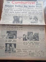 Cumhuriyet Gazetesi - 12 Temmuz 1956 - Muhalefet Partileri Dün Meclise Döndü - Ara Seçimlerinin Bu Sene Yapılmasına Dair Teklif Gürültülere Yol Açtı - Kıbrıs'ta Tedhişçilere Ani Baskınlar Yapıldı - Makarna Yeme Müsabakası - Bedii Faik'in Duruşmasına Dün Sabah Başlandı - Rüyam Kotrası Rakiplerinden 31 Deniz Mili Önde İlerliyor - Beykoz Fabrikası Tehlike Atlattı - Ferid Paşa Yalısını Örten Esrar Perdesi - Karanlıkta Sesler Yazan Perihan Zorlu - Burhan Felek - Üstad Münir Nurettin Selçuk Ve Korosu Bu Akşam Beşiktaş Bahçesinde - Resimli Romanımız Feci Bir Hata - Karacaoğlan Yazan Yaşar Kemal Yazı Dizisi - Bulmaca - Denizcilik Bankası - 150 Belediye Zabıtası Adayı Dün İmtihan Oldu- Galatasaraylı Sporcuların Babası Gündüz Kılıç - Rakipleri İçin Tehlike Üçüncü Beşiktaş - Film Yıldızı Cihan Işık Puro Tuvalet Sabunları Kullanıyorum Diyor - Doğubank adlı eser, Kitap > Süreli Yayınlar > Gazeteler > Türkiye > Genel > Günlük kategorisinde İkinci El olarak satıştadır.