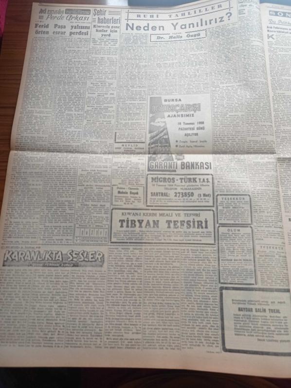 Cumhuriyet Gazetesi - 12 Temmuz 1956 - Muhalefet Partileri Dün Meclise Döndü - Ara Seçimlerinin Bu Sene Yapılmasına Dair Teklif Gürültülere Yol Açtı - Kıbrıs'ta Tedhişçilere Ani Baskınlar Yapıldı - Makarna Yeme Müsabakası - Bedii Faik'in Duruşmasına Dün Sabah Başlandı - Rüyam Kotrası Rakiplerinden 31 Deniz Mili Önde İlerliyor - Beykoz Fabrikası Tehlike Atlattı - Ferid Paşa Yalısını Örten Esrar Perdesi - Karanlıkta Sesler Yazan Perihan Zorlu - Burhan Felek - Üstad Münir Nurettin Selçuk Ve Korosu Bu Akşam Beşiktaş Bahçesinde - Resimli Romanımız Feci Bir Hata - Karacaoğlan Yazan Yaşar Kemal Yazı Dizisi - Bulmaca - Denizcilik Bankası - 150 Belediye Zabıtası Adayı Dün İmtihan Oldu- Galatasaraylı Sporcuların Babası Gündüz Kılıç - Rakipleri İçin Tehlike Üçüncü Beşiktaş - Film Yıldızı Cihan Işık Puro Tuvalet Sabunları Kullanıyorum Diyor - Doğubank, Yunus Nadi tarafından kaleme alınmıştır. Cumhuriyet Gazetesi - 12 Temmuz 1956 - Muhalefet Partileri Dün Meclise Döndü - Ara Seçimlerinin Bu Sene Yapılmasına Dair Teklif Gürültülere Yol Açtı - Kıbrıs'ta Tedhişçilere Ani Baskınlar Yapıldı - Makarna Yeme Müsabakası - Bedii Faik'in Duruşmasına Dün Sabah Başlandı - Rüyam Kotrası Rakiplerinden 31 Deniz Mili Önde İlerliyor - Beykoz Fabrikası Tehlike Atlattı - Ferid Paşa Yalısını Örten Esrar Perdesi - Karanlıkta Sesler Yazan Perihan Zorlu - Burhan Felek - Üstad Münir Nurettin Selçuk Ve Korosu Bu Akşam Beşiktaş Bahçesinde - Resimli Romanımız Feci Bir Hata - Karacaoğlan Yazan Yaşar Kemal Yazı Dizisi - Bulmaca - Denizcilik Bankası - 150 Belediye Zabıtası Adayı Dün İmtihan Oldu- Galatasaraylı Sporcuların Babası Gündüz Kılıç - Rakipleri İçin Tehlike Üçüncü Beşiktaş - Film Yıldızı Cihan Işık Puro Tuvalet Sabunları Kullanıyorum Diyor - Doğubank adlı eser Türkçe dilindedir.