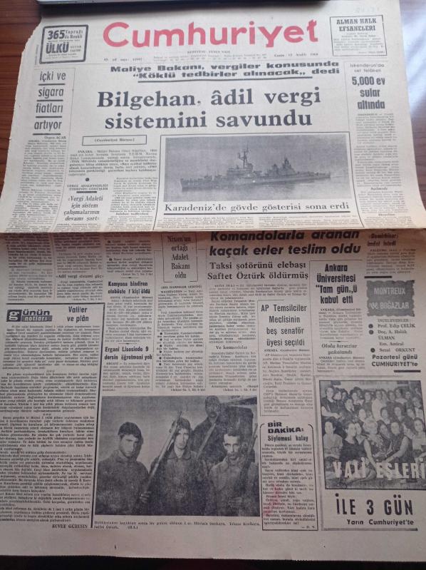 Cumhuriyet Gazetesi - 13 Aralık 1968 - Kurucusu Yunus Nadi - İlhan Selçuk - Anayasa Diyor Ki - Maliye Bakanı Cihat Bilgehan Adil Vergi Sistemini Sabundu- İskenderun'da Sel Felaketi - Nixon'un Ortağı John Mitchell Adalet Bakanı Oldu - Ankara Üniversitesi Tam Gün'ü Kabul Etti - Adalet Partisi Temsilciler Meclisinin Beş Senatör Üyesi Seçildi adlı eser Türkçe dilindedir.