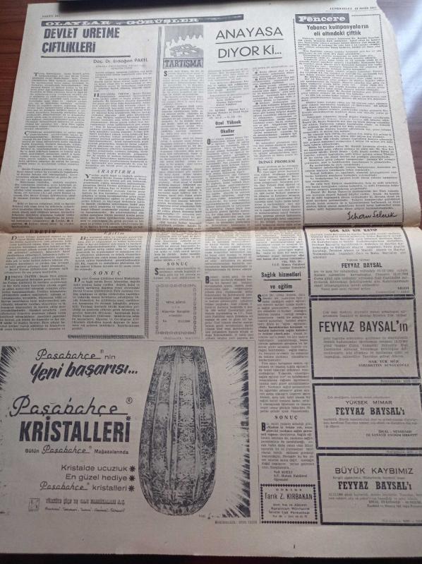 Sayfa Boyutu: 43*60cm Sayfa Sayısı: 2 Cumhuriyet Gazetesi Kupürü Yıpranma, sararmalar, kupon kesiği ve yırtılmalar zamana bağlı olarak görülebilir