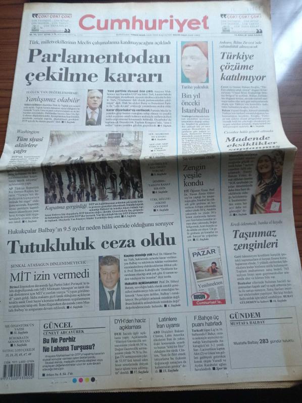 Cumhuriyet Gazetesi - 13 Aralık 2009 - Süleyman Demirel Yargıyı Rahat Bırakın -Avrupa Kısa Kulvar Yüzme Şampiyonasında Rekor Günü - Tarihe Yolculuk Bin Yıl Önceki İstanbullu - Demokratik Toplum Partisi Parlamentodan Çekilme Kararı Aldı - Ankara İklim Zirvesi - Ahmet Türk - Mit Müşteşarı Şengal Atasagun adlı eser Türkçe dilindedir.