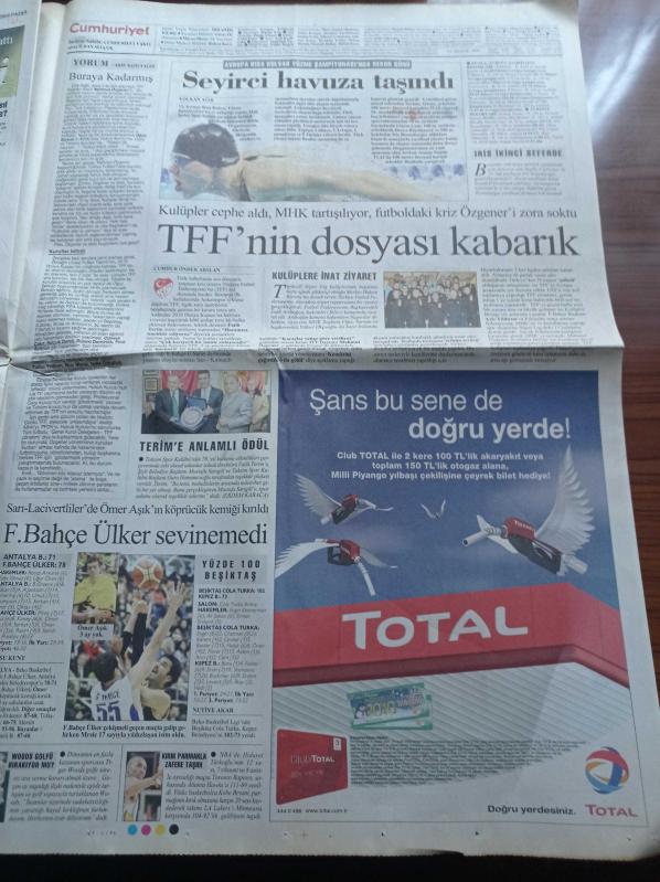 Sayfa Boyutu: 38*56cm Sayfa Sayısı: 24 Cumhuriyet Gazetesi Yıpranma, sararmalar, kupon kesiği ve yırtılmalar zamana bağlı olarak görülebilir