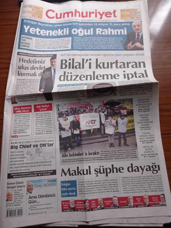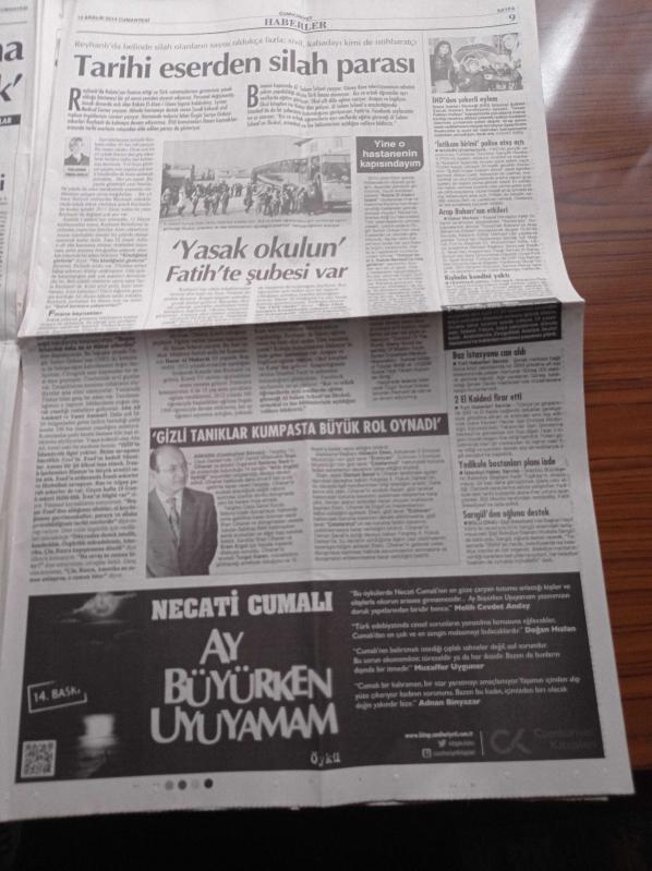 Cumhuriyet Gazetesi - 13 Aralık 2014 - Erdoğan Bayraktar Şirket Binası İçin Oğlundan 16 Milyon TL Borç Almış - Selahattin Demirtaş Birlikte Yaşamın Örneği Rojava - Çarşı Davasına Sahip Çıkıyor - Bilal Erdoğan'ı Kurtaran Düzenleme İptal - Alevilerin En Büyük Korkusu Can Güvenliği - Özgür Suriye Ordusunun Finans Kaynağı Tarihi Eserler adlı eser Türkçe dilindedir.