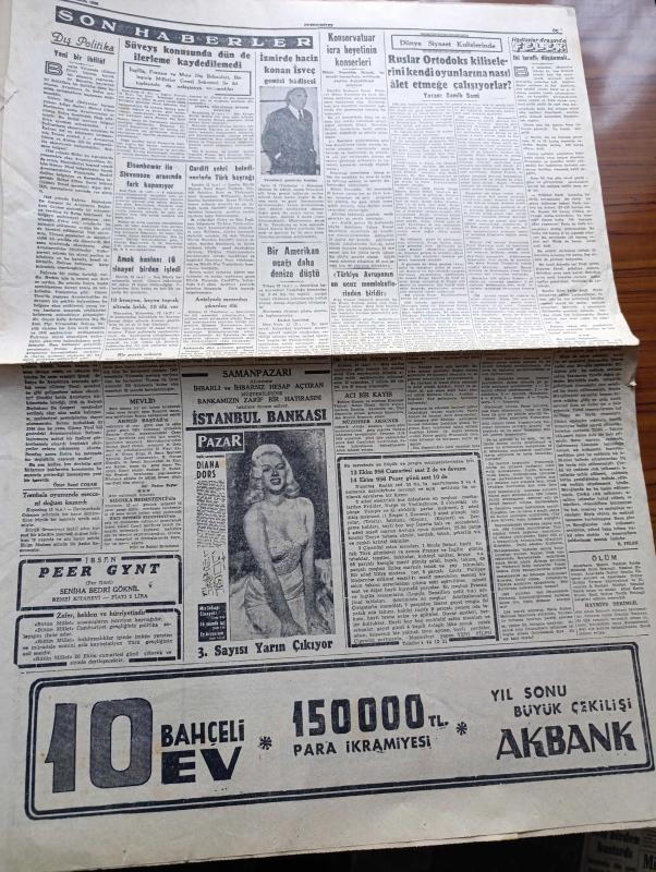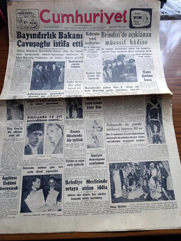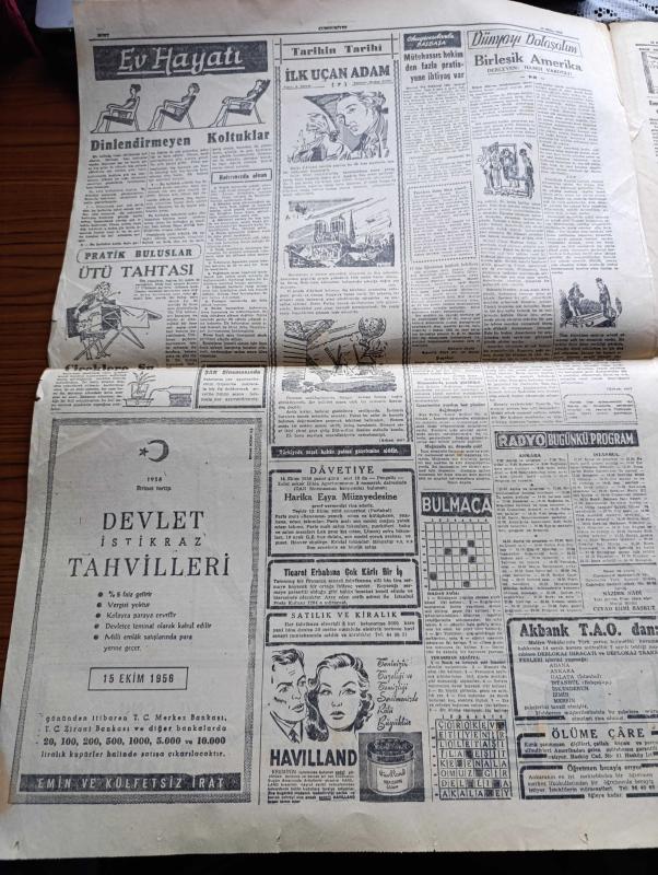 Cumhuriyet Gazetesi - 13 Ekim 1956 - Bayındırlık Bakanı Muammer Çavuşoğlu İstifa Etti - Patrik Athenagoras Protokol Dışına Mı Çıkıyor - İki Uçağımız Müsabakalara İştirak İçin Brindizi'ye Giderken Yunan Uçaklarının Gösteri Taarruzuna Uğradı - Demokrat İzmir Gazetesi Dün Toplattırıldı - Fenerbahçeli Bisikletçi Tayyar Güner Bisikletle Yurd İçinde 3500 Km. Yaptı - Üniversite Talebesi Gene Ayrı Açılış Töreni Yapacaklar - Don Camillo'nun Küçük Alemi Çeviren Burhan Felek Resimler Ali Ulvi Yazı Dizisi - Aşktan Da Üstün Yazan Elizabeth Gaskell Yazı Dizisi - Ev Hayatı Köşesi - Tarihin Tarihi İlk Uçan Adam Tercüme Mazhar Kunt Yazı Dizisi - Dünyayı Dolaşalım Birleşik Amerika Derleyen Hamdi Varoğlu Yazı Dizisi - Eşsiz Sanatkar Zeki Müren'in Elektrofon Plaklarında Okuduğu Yaprak Dökümü - Galatasaray Beyoğluspor Bugün Karşılaşıyor - Güreş Federasyonu İstişare Heyeti Dün Toplantı Yaptı - Ankaragücü Avrupa'ya Gidiyor - Spor Tarihimizin Karanlık Bir Noktası Aydınlanıyor - Fenerbahçe Kulübü adlı eser, Kitap > Süreli Yayınlar > Gazeteler > Türkiye > Genel > Günlük kategorisinde İkinci El olarak satıştadır.