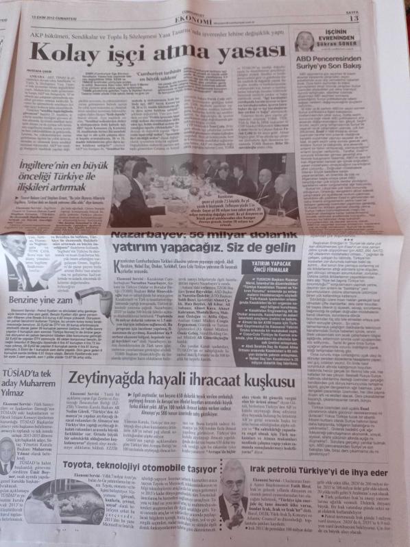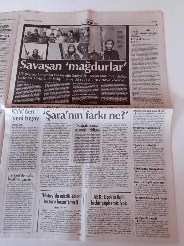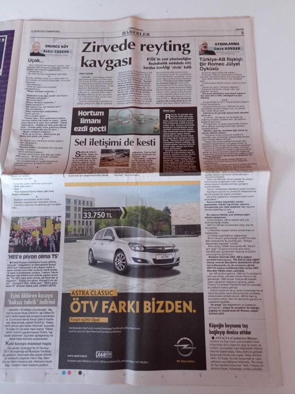 Cumhuriyet Gazetesi - 13 Ekim 2012 - Tartışılan Adam Abdullah Avcı - Alex De Souza'ya Sevgi Seliyle Veda - Mercan Erzincan'ın Seyir Albümü - Mars'ta Sıradışı Kaya - Meclis'te Seçim Şoku - 49. Antalya Altın Portakal Film Festivali - Soner Yalçın adlı eser Türkçe dilindedir.