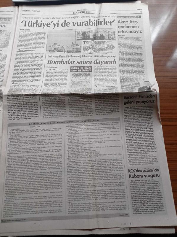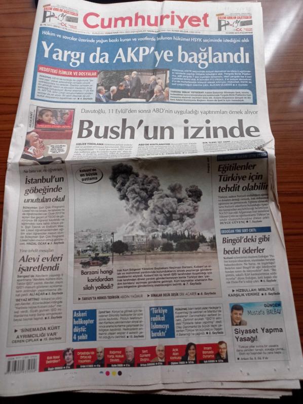 Cumhuriyet Gazetesi - 13 Ekim 2014 - Alp Yalman Aziz Yıldırım Sevdiğim Bir İnsan - Yargıda AKP'ye Bağlandı - Ahmet Davutoğlu 11 Eylül'den Sonra ABD'nin Uyguladığı Yaptırımları Örnek Alıyor - Barzani Hangi Koridordan Silah Yolladı - Recep Tayyip Erdoğan Kobani Eylemlerini Eleştirdi - Alevi Evleri İşaretlendi - Türkiye Radikal İslamcıyı Bıraktı adlı eser Türkçe dilindedir.
