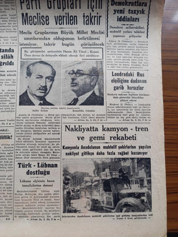 Cumhuriyet Gazetesi - 13 Haziran 1947 - Avrupa'yı Saran Buhran Köşe Yazısı - Amerika İle Sovyetler Arasındaki Gerginlik - Maliye Bakanı Halid Nazmi Keşmir'in Gelir Vergisine Dair Demeci - Amerikan Heyeti İzmir'de - Dünya İktisadi Durumu Vahim - Nakliyatta Kamyon Tren Ve Gemi Rekabeti - Prenses Neslişah Hakkında Aslı Çıkmayan Çok Çirkin Bir Dedikodu - Yunanistan'da 5 Sınıf Silah Altına Çağırıldı - 16. Asırda İstanbul'da Bir Musikili Temsil Yazan Refik Ahmed Sevengil - Necip Fazıl Kısakürek'in Büyük Doğu Gazetesi 4 Ay Kapatıldı - Leopold Levy'nin Sergisi Yazan Fikret Adil - Adak Yazan Kemal Ragıp Yazı Dizisi - Amerika'nın Yardımı Hakkında Pravda'nın Saçmaları - Mesken Buhranına Karşı Yazan Burhan Felek Köşe Yazısı - Ankara Yedinci Hafta Koşularının Tahminleri Yazan Reşad Kuran - Süreyya Plajı Açılıyor - Şato Lokantası - Star Traş Bıçağı - Bugünkü Radyo Programı - Mimeograph Teksir Makineleri - Venüs Çam Kolonyası - Arlon Saat Mağazaları - Doktor Şükrü Mehmed Sekban, Yunus Nadi tarafından kaleme alınmıştır. Cumhuriyet Gazetesi - 13 Haziran 1947 - Avrupa'yı Saran Buhran Köşe Yazısı - Amerika İle Sovyetler Arasındaki Gerginlik - Maliye Bakanı Halid Nazmi Keşmir'in Gelir Vergisine Dair Demeci - Amerikan Heyeti İzmir'de - Dünya İktisadi Durumu Vahim - Nakliyatta Kamyon Tren Ve Gemi Rekabeti - Prenses Neslişah Hakkında Aslı Çıkmayan Çok Çirkin Bir Dedikodu - Yunanistan'da 5 Sınıf Silah Altına Çağırıldı - 16. Asırda İstanbul'da Bir Musikili Temsil Yazan Refik Ahmed Sevengil - Necip Fazıl Kısakürek'in Büyük Doğu Gazetesi 4 Ay Kapatıldı - Leopold Levy'nin Sergisi Yazan Fikret Adil - Adak Yazan Kemal Ragıp Yazı Dizisi - Amerika'nın Yardımı Hakkında Pravda'nın Saçmaları - Mesken Buhranına Karşı Yazan Burhan Felek Köşe Yazısı - Ankara Yedinci Hafta Koşularının Tahminleri Yazan Reşad Kuran - Süreyya Plajı Açılıyor - Şato Lokantası - Star Traş Bıçağı - Bugünkü Radyo Programı - Mimeograph Teksir Makineleri - Venüs Çam Kolonyası - Arlon Saat Mağazaları - Doktor Şükrü Mehmed Sekban adlı eser Türkçe dilindedir.